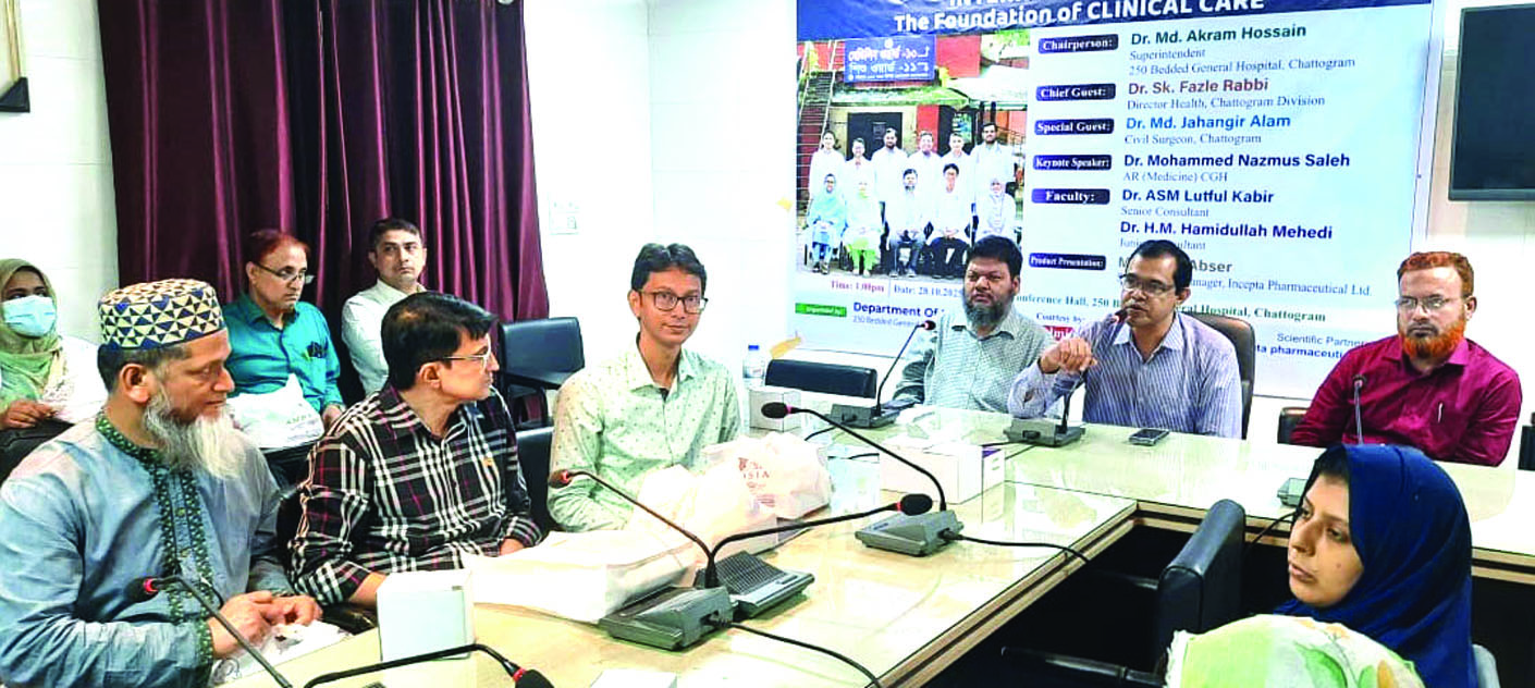 ইন্টারনাল মেডিসিন দিবস উপলক্ষে চট্টগ্রাম ২৫০ শয্যা বিশিষ্ট জেনারেল হাসপাতালের মেডিসিন বিভাগের উদ্যোগে ‘চিকিৎসার ভিত্তি হিসাবে অভ্যন্তরীণ মেডিসিন সম্পর্কিত বৈজ্ঞানিক সেমিনার’ গত মঙ্গলবার দুপুরে হাসপাতালের সম্মেলন কক্ষে অনুষ্ঠিত হয়। এতে বক্তারা উপরোক্ত কথা বলেন।
