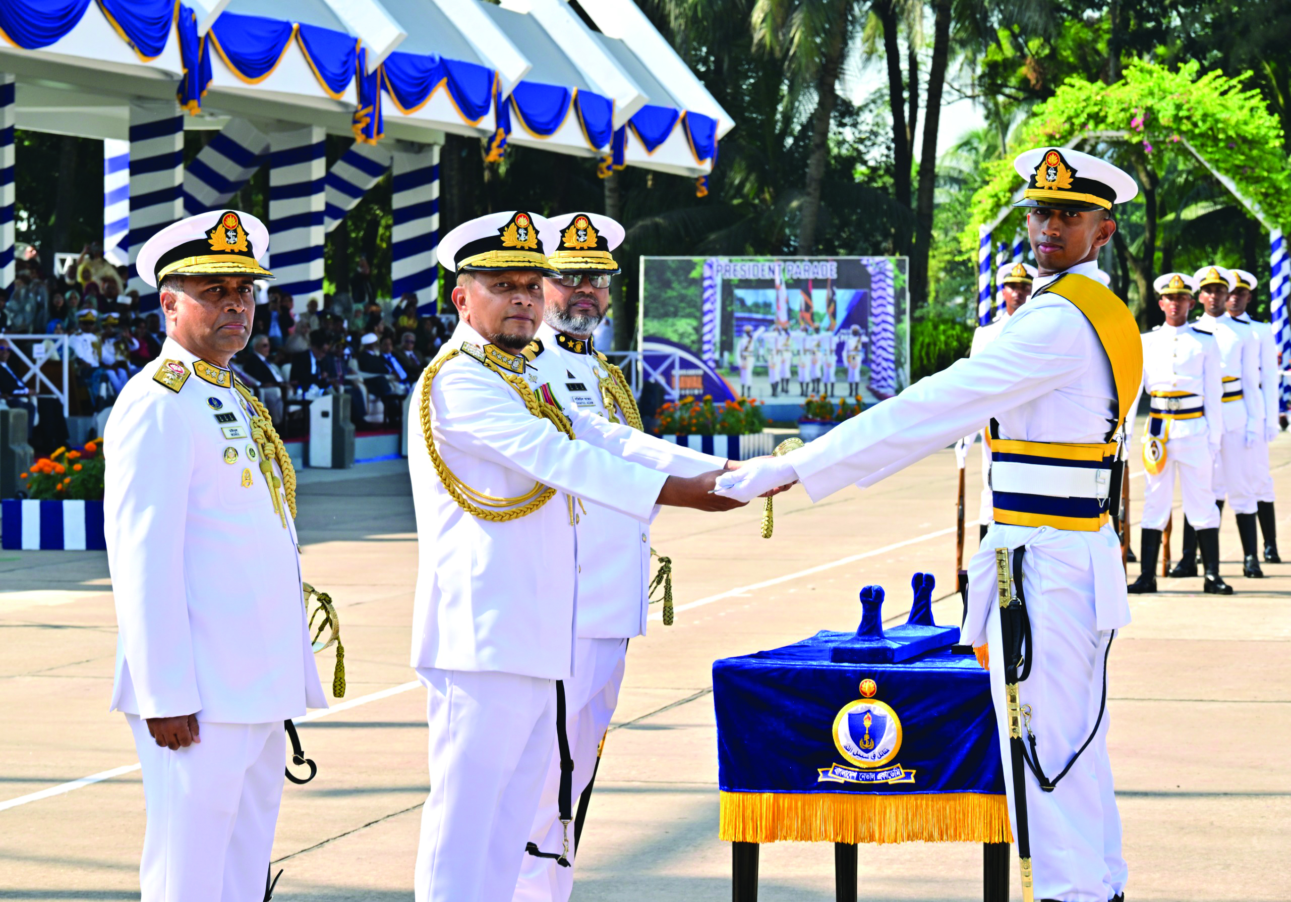 নৌবাহিনী প্রধান অ্যাডমিরাল এম নাজমুল হাসান নবীন কর্মকর্তাদের দেশপ্রেম ও নিষ্ঠার সঙ্গে দায়িত্ব পালনের আহ্বান জানান। সততা, সঠিক নেতৃত্ব ও আত্মত্যাগের মন্ত্রে বলীয়ান হয়ে দেশের সার্বভৌমত্ব রক্ষায় সেনা ও বিমান বাহিনীর সদস্যদের সাথে কাঁধে কাঁধ মিলিয়ে দেশের সার্বভৌমত্ব রক্ষা এবং যে–কোনো দুর্যোগ মোকাবিলায় নবীন কর্মকর্তাদের সদা প্রস্তুত থাকার নির্দেশনা দেন। পেশা হিসেবে দেশ সেবার এ মহান দায়িত্বকে বেছে নেওয়ায় নবীন কর্মকর্তা ও তাদের অভিভাবকবৃন্দকে অভিনন্দন জানান তিনি। মনোমুগ্ধকর কুচকাওয়াজ প্রদর্শনের জন্য প্রশিক্ষণের সাথে সংশ্লিষ্ট সকল কর্মকর্তা, প্রশিক্ষক ও নৌসদস্যদের তিনি ধন্যবাদ জানান।