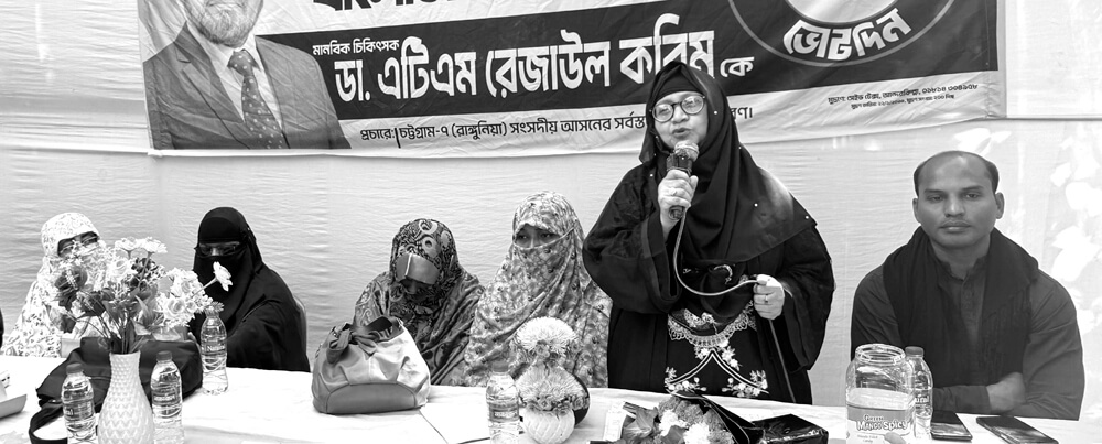 রাঙ্গুনিয়ার উপজেলার দক্ষিণ রাজানগর ৫ ও ৬ নং ওয়ার্ডে জামায়াতে ইসলামীর মহিলা সমাবেশ অনুষ্ঠিত হয়েছে। গতকাল শনিবার সকালে আলাদা দুটি স্থানে এ সমাবেশ অনুষ্ঠিত হয়। আয়োজিত দুটি সভায় ফারজানা আক্তারের সঞ্চালনায় প্রধান অতিথির বক্তব্যে দেন জামায়াতে ইসলামীর প্রার্থী ডাঃ এটিএম রেজাউল করিমের সহধর্মিণী ডাঃ কোহিনুর নাহার। বক্তব্য দেন তার ভাগিনা ডাঃ মোহাম্মদ মামুন, ডাঃ মোহাম্মাদ নাছির, জান্নাতুল নাঈম, দক্ষিণ রাজানগর জামায়াতে ইসলামীর নেতা অধ্যাপক গফুর আহমদ, মো. মুছা, অলি আহমদ প্রমুখ। প্রধান অতিথির বক্তব্যে ডা. কোহিনূর নাহার বলেন, ‘এবারের নির্বাচন আমাদের জন্য বড় সুযোগ। এই নির্বাচনে আমরা যদি সঠিক মানুষকে বেঁচে নিতে না পারি, তবে রাঙ্গুনিয়া আরো ৫০ বছর পিছিয়ে যাবে। তাই রাঙ্গুনিয়ার যোগ্য সন্তান হিসেবে ডা. এটিএম রেজাউল করিমকে দাড়িপাল্লা প্রতীকে ভোট দিয়ে জয়লাভ করাতে হবে।