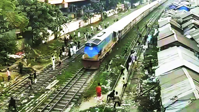 সামাজিক যোগাযোগ মাধ্যম ফেসবুকে আসা ৫৪ মিনিটের একটি ভিডিওতে দেখা গেছে, কমলাপুর থেকে একটি ট্রেন ছেড়ে আসছে। আর খিলগাঁও রেলেগেটের ঠিক আগে রেললাইনের দুপাশে একদল লোক দাঁড়িয়ে আছে। ট্রেনটি কাছাকাছি আসতে তারা ওই ট্রেন লক্ষ্য করে পাথর ছুঁড়ে মারছে। ট্রেনটি ওই স্থান অতিক্রম করা পর্যন্ত পাথর নিক্ষেপ করে যাচ্ছিল তারা। তাদের বেশিরভাগই পাথর মেরেছে ট্রেনের জানলার কাঁচ লক্ষ্য করে। ভিডিওতে দেখা গেছে, লাল শার্ট পরা একজন ট্রেনের ইঞ্জিনে থাকা লোকোমাস্টারকে লক্ষ্য করে পাথর মেরেছেন। ট্রেনে পাথর মারার সময় সাদা এবং হলুদ পাঞ্জাবি পরা দুজন লোক দুপাশ থেকে তাদের নিবৃত্ত করার চেষ্টা করছেন। তবে তাদের থামানো যায়নি।