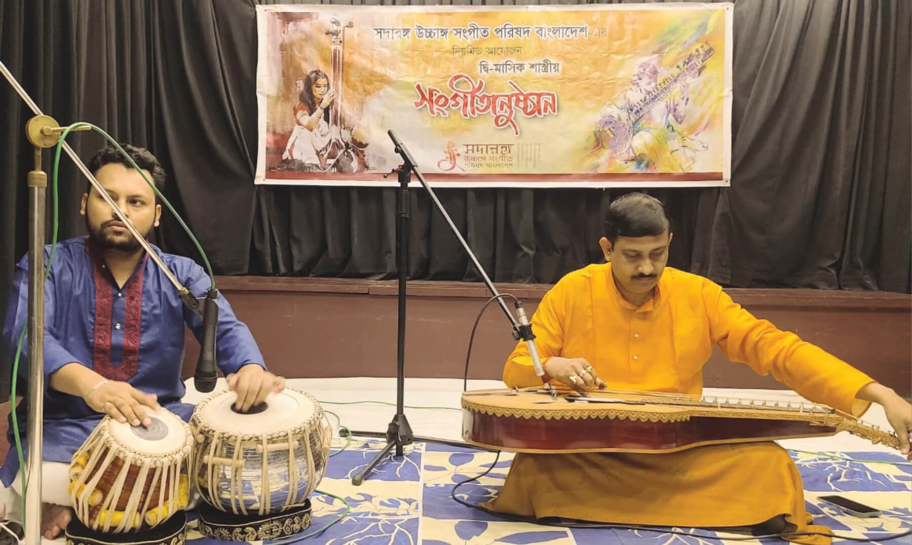 সদারঙ্গ উচ্চাঙ্গ সংগীত পরিষষ বাংলাদেশের দ্বিমাসিক শাস্ত্রীয় সঙ্গীতানুষ্ঠান গতকাল শুক্রবার অনুষ্ঠিত হয়। থিয়েটার ইনস্টিটিউট চট্টগ্রামে আয়োজিত স্বাগত বক্তব্য দেন, সদারঙ্গের সাধারণ সম্পাদক সমীর চক্রবর্ত্তী। আলোচনায় অংশ নেন, প্রফেসর ড. সহিদ উল্যাহ লিপন ও প্রকৌশলী রূপক সেন। এদিনের মূল পর্বে প্রথমে রূপক তালে দ্বৈত তবলা লহড়া পরিবেশন করেন শিশু শিল্পী অনিন্দ্য দে এবং অরিন্দম পাণ্ডে। নাগমা বাজিয়ে সহযোগিতা করেন তাদেরই তবলা গুরু পলাশ দেব। এরপরে মারোয়া রাগে খেয়াল পরিবেশন করেন শাশ্বত বিশ্বাস। সহযোগিতা করেন তবলায় পলাশ দেব, হারমোনিয়ামে রাজেশ সাহা এবং তানপুরায় এনায়েত উল্লাহ সানি। সর্বশেষ পরিবেশনা চতুরঙ্গিতে রাগ রাগেশ্রী বাদন। পরিবেশন করেন বাবুসোনা বসু। তাঁকে তবলায় সহযোগিতা করেন জয়ন্ত দেব। অনুষ্ঠান উপস্থাপনা করেন রুচিরা বড়ুয়া। প্রেস বিজ্ঞপ্তি।