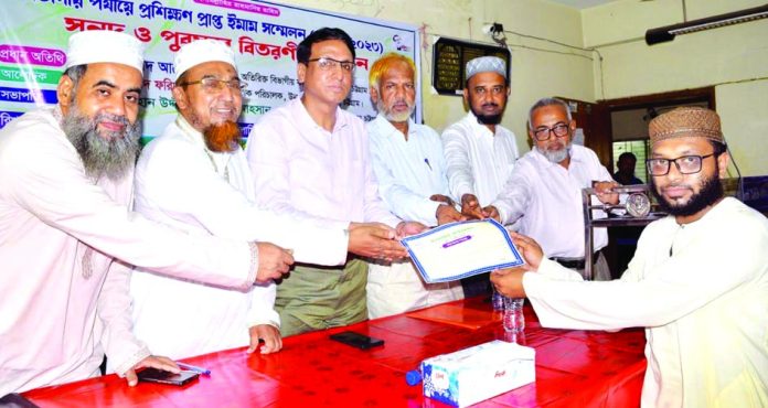 ইসলামিক ফাউন্ডেশন চট্টগ্রাম বিভাগীয় কার্যালয়ের উদ্যোগে গত ৮ জুন পাহাড়তলীস্থ হাজী ক্যাম্প ইসলামিক ফাউন্ডেশন মিলনায়তনে ইসলামিক ফাউন্ডেশন চট্টগ্রাম বিভাগীয় কার্যালয়ের পরিচালক বোরহান উদ্দীন মো. আবু আহসানের সভাপতিত্বে জেলা হতে আগত প্রশিক্ষণপ্রাপ্ত শ্রেষ্ঠ ইমামদের নিয়ে বিভাগীয় ইমাম সম্মেলনের সনদ ও পুরস্কার বিতরণী অনুষ্ঠানের আয়োজন করা হয়। বিভাগীয় ইমাম সম্মেলন অনুষ্ঠানে প্রধান অতিথি ছিলেন অতিরিক্ত বিভাগীয় কমিশনার (উন্নয়ন) মুহাম্মদ আনোয়ার পাশা। বিশেষ অতিথি ছিলেন উন্মুক্ত বিশ্ববিদ্যালয়, চট্টগ্রামের আঞ্চলিক পরিচালক মোহাম্মদ ফরিদুল আলম। প্রধান অতিথি বলেন, জঙ্গিবাদ দূরীকরণে বর্তমান সরকার বিশ্বে মডেল হয়ে থাকবে। দেশের দুর্নীতি অনাচার, ইভটিজিং, যৌতুক, নারী নির্যাতনের বিরুদ্ধে দেশের মসজিদের ইমামদেরকে সোচ্চার হতে হবে। ইমামগণ সমাজের সর্বশ্রেণীর কাছে গ্রহণযোগ্য ব্যক্তি। তাদেরকে যথাযথ কাজে লাগালেই সমাজ থেকে যাবতীয় অপকর্ম দূর করা অনেকটা সহজ হবে। ফিল্ড সুপারভাইজার মো. জয়নাল আবেদিনের সঞ্চালনায় স্বাগত বক্তব্য দেন, ইফা, চট্টগ্রাম বিভাগের সহকারী পরিচালক মোহাম্মদ এনায়েত হোসাইন। ইফার পরিচালক বোরহান উদ্দীন মো. আবু আহসান বলেন, দেশের সর্বস্তরের আলেম ওলামা মসজিদের ইমামদের নিরাপদ ঠিকানা ইসলামিক ফাউন্ডেশন। শেষে দোয়া ও মুনাজাতের মাধ্যমে অনুষ্ঠানের সমাপ্তি ঘটে। প্রেস বিজ্ঞপ্তি।