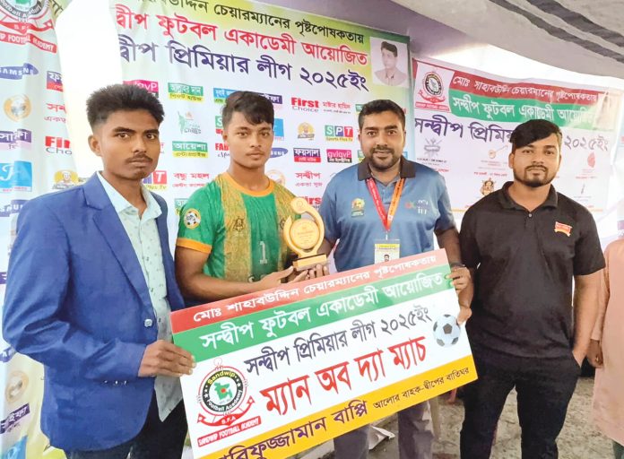 সন্দ্বীপ ফুটবল একাডেমি আয়োজিত সন্দ্বীপ প্রিমিয়ার ফুটবল লিগের ফাইনালে উঠেছে চৌধুরী আবু তোরাব দ্যা ফাইটার্স। গতকাল প্রথম সেমিফাইনাল খেলায় তারা ১–০ গোলে শাহ বাঙালি দ্যা সিঙ্গার এফসিকে পরাজিত করে। রহমতপুর আরপিএল মাঠে এ খেলা অনুষ্ঠিত হয়। ম্যাচের শুরু থেকেই দুই দলই আক্রমণ–পাল্টা আক্রমণে খেলতে থাকলেও, নির্ধারিত সময়ে দ্যা ফাইটার্স একমাত্র গোলেই ফাইনালের টিকিট নিশ্চিত করে। সিঙ্গার এফসি একাধিক সুযোগ তৈরি করলেও সফল হতে পারেনি।