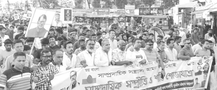 মহানগর স্বেচ্ছাসেবক লীগ : স্বেচ্ছাসেবক লীগ মহানগরের উদ্যোগে শান্তি ও সম্প্রীতি সমাবেশ ও শান্তি শোভাযাত্রা দেবাশীষ নাথ দেবুর সভাপতিত্বে ২নং গেইট জয়বাংলা চত্বরে গতকাল শুক্রবার অনুষ্ঠিত হয়। সভায় বক্তব্য দেন, মো. সিরাজুল ইসলাম, আশরাফ উদ্দিন শাহীন, মোহসীন মোরশেদ টিপু, মোহাম্মদ আলী চৌধুরী, মো. খুরশিদ হাসান, আলী সরওয়ার, জাকির হোসেন, কামরুল আলম, সাইফুদ্দিন বাবুল, যীশু নাথ, আব্দুর নূর, আব্দুর রাজ্জাক বাবু, মাইনুদ্দিন চৌধুরী ঈমন, দোলন বৈষ্ণব, এম কে আলম বাসেদ, হারুনুর রশিদ বাপ্পি, সন্িজব দাশ প্রমূখ।