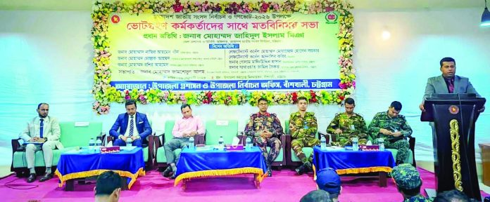 ত্রয়োদশ জাতীয় সংসদ নির্বাচন ও গণভোট উপলক্ষে গতকাল শুক্রবার বাঁশখালী উপজেলা কমপ্লেঙ মিলনায়তনে ভোটগ্রহণ কর্মকর্তাদের সঙ্গে এক মতবিনিময় সভা ও দিনব্যাপী প্রশিক্ষণ কর্মসূচিতে প্রধান অতিথির বক্তব্যে তিনি এসব কথা বলেন।