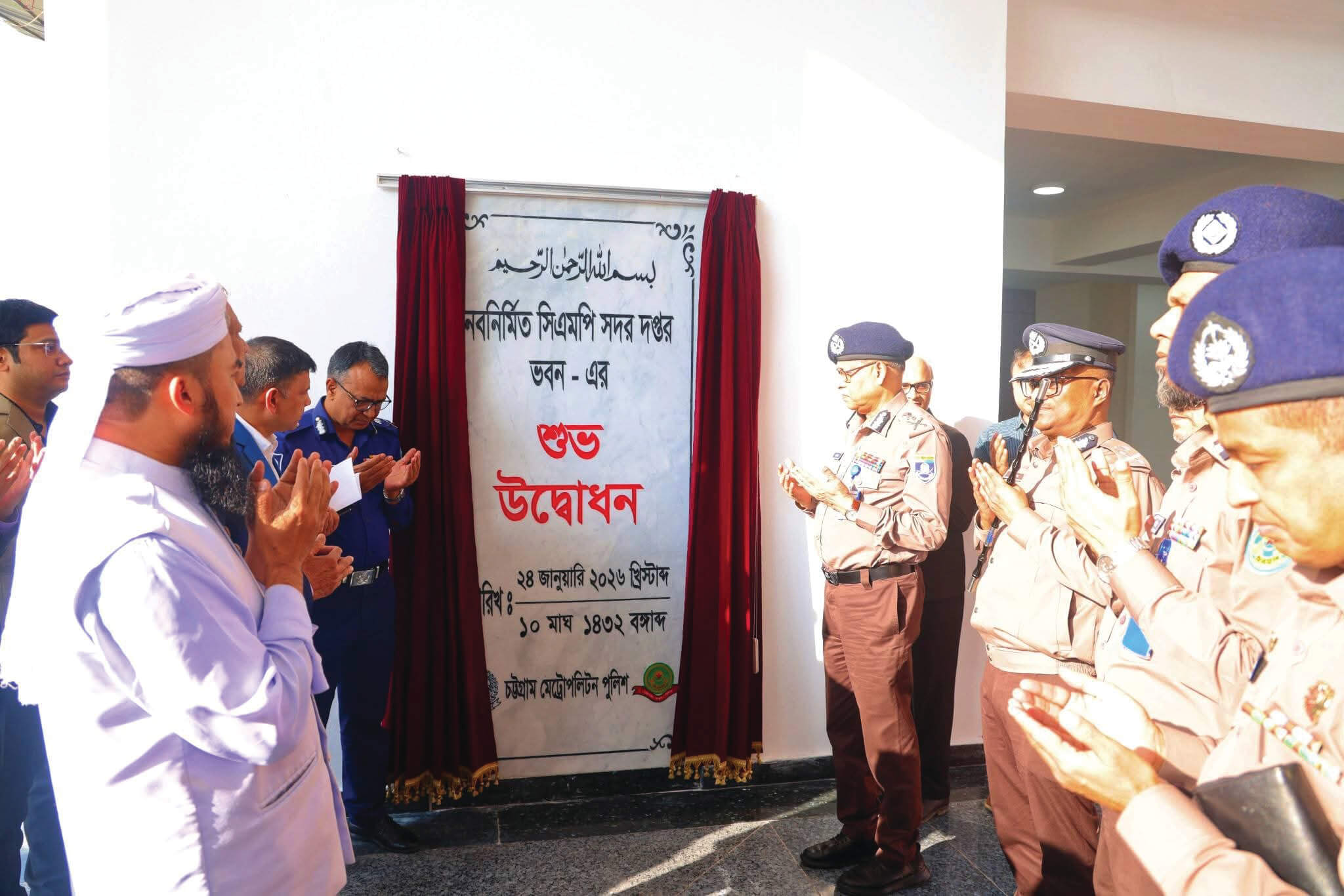 সিএমপি সদর দপ্তর ভবন উদ্বোধন : চট্টগ্রাম মেট্রোপলিটন পুলিশের (সিএমপি) নবনির্মিত সদর দপ্তর ভবন গতকাল উদ্বোধন করেছেন আইজিপি বাহারুল আলম। ভবনের ফলক উন্মোচনের পর মোনাজাত করা হয়। এরপর তিনি কোতোয়ালী থানাধীন বডিঅর্ন ক্যামেরা মনিটরিং সেল পরিদর্শন করেন। তিনি বলেন, দায়িত্ব পালনের সময় বডিঅর্ন ক্যামেরার ব্যবহার নিশ্চিত করতে হবে, যা স্বচ্ছতা ও জবাবদিহিতা বৃদ্ধিতে সহায়ক ভূমিকা রাখবে।