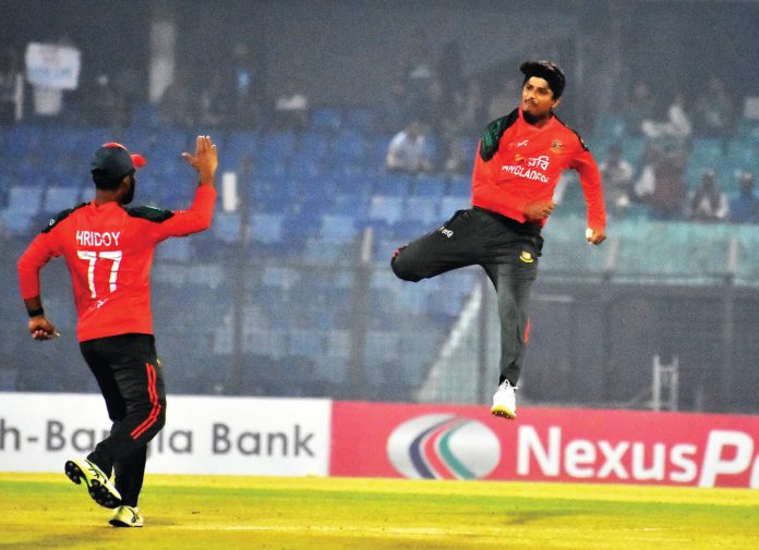 চার বলের ব্যবধানে ২ উইকেট হারিয়ে চাপে পড়ে বাংলাদেশ। এরপর রান আউট হন তাওহিদ হৃদয়। তাওহিদ ৯ বলে ৬ রান করেন। ৭ বলে ৫ রান করে বোল্ড হয়ে যান নুরুল হাসান সোহান। ৬ উইকেট হারিয়ে স্বাগতিকরা শঙ্কায় পড়ে যায় এই সময়। সেখান থেকে সাইফউদ্দিনের ব্যাটে আসে জয়। ৭ বলে ২ চার আর ১ ছক্কায় ১৭ রানে অপরাজিত থাকেন সাইফউদ্দিন। ৩ বলে একটি ছক্কা হাঁকান শেখ মেহেদি। ওই ছক্কাতেই ম্যাচ চলে আসে বাংলাদেশের অনুকূলে। আয়ারল্যান্ডের পক্ষে এডায়ার এবং ডেলানি ২টি করে উইকেট নেন।