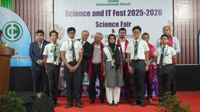 সাইডার ইন্টারন্যাশনাল স্কুল আয়োজিত চারদিন ব্যাপী ‘বিজ্ঞান ও আইটি উৎসব-২০২৫-২৬’ স্কুল মিলনায়তনে অনুষ্ঠিত হয়েছে।