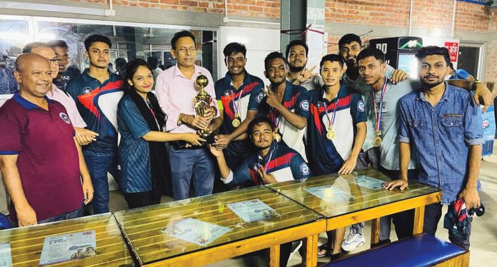 সাউদার্ন ইউনিভার্সিটির ব্যবসায় প্রশাসন বিভাগের আন্তঃব্যাচ ফুটবল টুর্নামেন্ট শেষ হয়েছে। ফাইনালে ফারুকুল ইসলাম আনন্দের হ্যাটট্রিকের সুবাদে ব্যাচ ৭১ সহজেই হারিয়েছে ব্যাচ ৭০ কে। গত সোমবার বিকেলে সাউদার্ন ইউনিভার্সিটি খেলার মাঠে জমজমাট ফাইনাল খেলা শেষে পুরস্কার বিতরণ করেন সাউদার্ন ইউনিভার্সিটি স্পোর্টস কমিটির চেয়ারম্যান, ভার্সিটির কোষাধ্যক্ষ ড. শরীফ আশরাফউজ্জামান। ক্রীড়া কর্মকর্তা সাইফুল্লাহ্ চৌধুরীর সঞ্চালনায় সমাপনী অনুষ্ঠানে অন্যদের মাঝে উপস্থিত ছিলেন সহকারী রেজিস্ট্রার মো. হেলাল নূর, আয়োজক কমিটির কর্মকর্তা তাহি, নাজিম, আদিব, ফাহিম ও তানভির। টুর্নামেন্টে ৮টি ব্যাচ অংশগ্রহণ করে।
