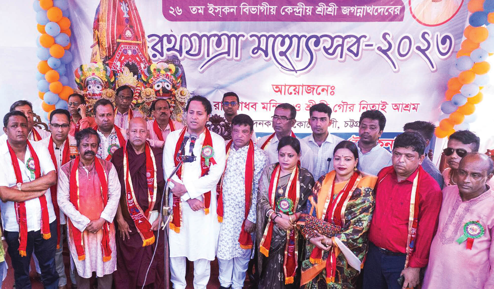 শিক্ষা উপমন্ত্রী মহিবুল হাসান চৌধুরী নওফেল বলেন, সামপ্রদায়িকতা, মৌলবাদ ও ধর্মীয় গোঁড়ামি প্রতিরোধে আমাদের সবার দায়িত্ব রয়েছে। পরিবার, শিক্ষাপ্রতিষ্ঠান ও ধর্মীয় নেতাদের পাশাপাশি রাজনৈতিক নেতাদের দায়িত্ব এক্ষেত্রে সবচেয়ে বেশি। সামপ্রদায়িক হামলা উস্কে দিতে গুজব সবচেয়ে বেশি ভূমিকা রাখছে। অনেক সময় ধর্মীয় উৎসবে অহেতুক উত্তেজনা সৃষ্টি করা হয়, যার সঙ্গে ধর্মীয় আচার–অনুষ্ঠানের কোনো সম্পর্ক থাকে না। উৎসবে উচ্ছ্বাসের সঙ্গে সঙ্গে দায়িত্বশীল আচরণের ব্যাপারেও আমাদের সবাইকে সজাগ থাকতে হবে। গতকাল মঙ্গলবার নন্দনকানন শ্রীশ্রী রাধামাধব মন্দির ও গৌর নিতাই আশ্রম সম্মুখে ডিসি হিল প্রাঙ্গণে আন্তর্জাতিক কৃষ্ণভাবনামৃত সংঘ (ইসকন) চট্টগ্রাম আয়োজিত ২৬তম কেন্দ্রীয় রথযাত্রার ধর্মীয় মহাসম্মেলনে প্রধান অতিথির বক্তব্যে তিনি এসব কথা বলেন। শিক্ষা উপমন্ত্রী আরও বলেন, দেশের উন্নয়নের গতি অব্যাহত রাখতে গিয়ে আমরা যে রাজনৈতিক যুদ্ধে রয়েছি, এই যুদ্ধ অত্যন্ত কঠিন। এই যুদ্ধে জয়ী হতে হলে সমাজে যারা সামপ্রদায়িক রাজনীতির পৃষ্ঠপোষক, তাদের শিকড় যতই গভীরে থাকুক না কেন, সেটির মূল উপড়ে ফেলতে হবে। মন্দিরের জায়গা দখল করবেন সাধু সন্ন্যাসীদের নামে মামলা হামলা করবেন এটা আমরা কোনো ভাবেই বরদাস্ত করবো না। সামপ্রদায়িকতা, ধর্মীয় উগ্রবাদ, রাজনৈতিক উদ্দেশ্যে ধর্মের অপব্যবহার ধর্মনিরপেক্ষতার ক্ষেত্রে বারবার বাধা সৃষ্টি করছে। জামায়াত–বিএনপির মতো উগ্র সামপ্রদায়িক দলগুলোর অবস্থান অসামপ্রদায়িক বাংলাদেশ বিনির্মাণে এখনো বড় বাধা। নন্দনকানন ইসকন মন্দিরের অধ্যক্ষ পন্ডিত গদাধর দাস ব্রহ্মচারীর সভাপতিত্বে ও তারণ নিত্যানন্দ দাস ব্রহ্মচারীর সঞ্চালনায় উদ্বোধক ছিলেন সাবেক মেয়র ও মহানগর আওয়ামী লীগের সাধারণ সম্পাদক আ জ ম নাছির উদ্দীন। প্রধান বক্তা ছিলেন চট্টগ্রাম মেট্রোপলিটন পুলিশ কমিশনার কৃষ্ণপদ রায়।