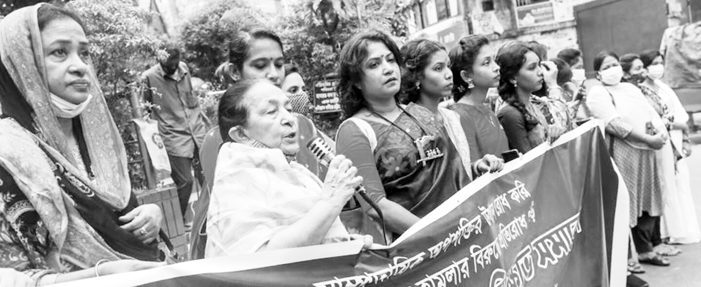 আবৃত্তি সমন্বয় পরিষদের নারী অধিকার : দেশের বিভিন্নস্থানে মন্দির ও পূজামণ্ডপে হামলা, হত্যা, নারীদের উপর নির্যাতনের প্রতিবাদে বাংলাদেশ আবৃত্তি সমন্বয় পরিষদের নারী অধিকার উপকমিটির আয়োজনে চট্টগ্রাম চেরাগি চত্বরে গতকাল প্রতিবাদী আবৃত্তি ও বিক্ষোভ সমাবেশ অনুষ্ঠিত হয়। সাম্প্রদায়িক অপশক্তির উত্থানের বিরুদ্ধে প্রতিরোধ গড়ে তোলার আহ্বান জানিয়ে এই কর্মসূচিতে তাসকিয়াতুন নূর তানিয়ার সঞ্চালনায় এবং কংকন দাশের সভাপতিত্বে প্রধান অতিথির বক্তব্য রাখেন মহিলা পরিষদ চট্টগ্রামের সাবেক সভাপতি নারী নেত্রী নূর জাহান খান। সমাবেশে একক আবৃত্তি পরিবেশন করেন আবৃত্তি শিল্পী নিশাত হাসিনা শিরীন, দিলরুবা খানম, কিশোয়ার জাহান তুলি, পুষ্পা সর্ব্ববিদ্যা, পলি ঘোষ, শ্রাবন্তী বড়ুয়া, লিপী সেন, নূসরাত জাহান পুস্পা, অজন্তা বর্মা, দিপান্বীতা চৌধুরী, ফাল্গুনী ঘোষ, কানিজ ফাতেমা, জয়া চৌধুরী, ফাইরুজ নাওয়াল দুর্দানা, সানজিদা রহমান, অনুকা গুহ, পূজয়িতা দত্ত, অর্পিতা পাল। দলীয় পরিবেশনা করেন সূচয়ন ললিত কলা কেন্দ্রের শিল্পীরা।