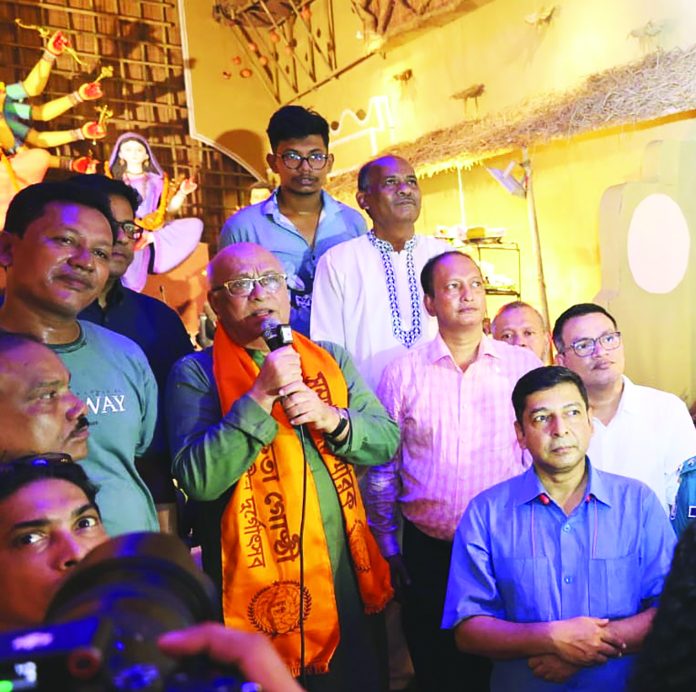 দুর্গাপূজা মণ্ডপ পরিদর্শনে ফারুক-ই-আজম