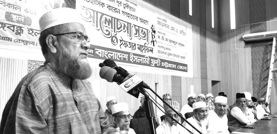 ঐতিহাসিক বারেন বিপ্লব দিবস স্মরণে ইসলামী ফ্রন্ট চট্টগ্রাম জেলা গতকাল বুধবার বিকেলে চট্টগ্রাম প্রেসক্লাব বঙ্গবন্ধু হলে স্মরণসভার আয়োজন করে। নগর দক্ষিণ ইসলামী ফ্রন্টের সভাপতি মাওলানা নূরুল ইসলাম জেহাদীর সভাপতিত্বে স্মরণসভায় প্রধান অতিথি ছিলেন ইসলামী ফ্রন্টের কেন্দ্রীয় চেয়ারম্যান মাওলানা এম এ মতিন। মুখ্য আলোচক ছিলেন কেন্দ্রীয় মহাসচিব মাওলানা স উ ম আবদুস সামাদ। প্রধান অতিথি বলেন, সাম্রাজ্যবাদী অপশক্তি আজ দেশে দেশে মাথাচাড়া দিয়ে উঠেছে। চীনসহ দেশে দেশে চলা সাম্রাজ্যবাদী দেশগুলোর বর্বরতা ও গণহত্যা থামাতে জাতিসংঘসহ বৈশ্বিক সংস্থাগুলোকে জোরালো আইনগত পদক্ষেপ নিতে হবে। সাম্রাজ্যবাদী অপশক্তিকে প্রতিহত করতে হবে। মুখ্য আলোচক স উ ম আবদুস সামাদ বলেন, বিশ্বের মোড়ল বড় দেশগুলো মানবাধিকারের সবক দেয়। সভাপতির বক্তব্যে মাওলানা নূরুল ইসলাম জেহাদী বলেন, মুসলমানরা শান্তিপ্রিয় জাতি। মাস্টার মুহাম্মদ আবুল হোসাইনের সঞ্চালনায় স্মরণসভায় বক্তব্য দেন, আহলে সুন্নাত ওয়াল জমা’আতের চেয়ারম্যান আল্লামা কাজী মুঈন উদ্দিন আশরাফী, অ্যাডভোকেট আবু নাছের তালুকদার, এম সোলায়মান ফরিদ, অধ্যক্ষ মাওলানা মুফতি আহমদ হোসাইন আল কাদেরী, অধ্যক্ষ আবু তালেব বেলাল, আব্দুর রহিম, মাওলানা রেজাউল করিম তালুকদার, এম এ মাবুদ, ইঞ্জিনিয়ার নূর হোসেন, এনামুল হক ছিদ্দিকী, মহিউল আলম চৌধুরী, মাওলানা ওবাইদুল মোস্তফা কদমরসূলী, মাওলানা আব্দুন নবী আল কাদেরী, মাওলানা ইউনুস তৈয়বি, আলী হোসাইন, ফেরাকানুল আলম চৌধুরী, মাওলানা ইয়াছিন হোসাইন হায়দরী, নাছির উদ্দিন মাহমুদ, ফরিদুল ইসলাম, মাওলানা নূরুল্লাহ রায়হান খান, মুহাম্মদ জসিম উদ্দিন, মাওলানা সৈয়দ শামসুল ইসলাম আজমী, সৈয়দ মুহাম্মদ আবু আজম, ইব্রাহিম খলিল, আজিম উদ্দিন জনি, জামাল উদ্দিন, আব্দুল্লাহ আল জাবের, শাহেদুল আলম, কাজী মুহাম্মদ আরাফাত, মুহাম্মদ নূরউদ্দিন, মুহাম্মদ বেলাল কাদেরী, নূর রায়হান চৌধুরী প্রমুখ। পরে মুনাজাত করেন আল্লামা কাজী মুঈন উদ্দীন আশরাফী। প্রেস বিজ্ঞপ্তি।