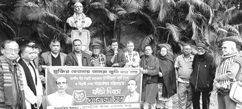 মাস্টারদা সূর্য সেন স্মৃতিরক্ষা কমিটি চট্টগ্রামের উদ্যোগে ফাঁসি দিবস স্মরণে জে. এম. সেন হল প্রাঙ্গণে গতকাল সোমবার মাস্টারদা সূর্য সেনের আবক্ষ প্রতিকৃতিতে পুষ্পার্ঘ্য অর্পণ করা হয়। এসময় উপস্থিত ছিলেন সংগঠনের সাধারণ সম্পাদক তাপস হোড়, হরিপদ চৌধুরী বাবুল, বিকাশ মজুমদার, সজল চৌধুরী, সাজিদুল হক হাসান, অ্যাড. সুমন সরকার, সাধারণ সম্পাদক গৌতম দাশ, সজীব দত্ত সৌরভ, অ্যাড. সুজন চক্রবর্তী, শাপলু মিত্র প্রমুখ।