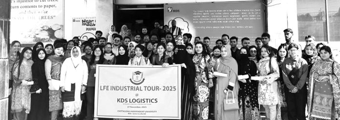 চিটাগং ইন্ডিপেন্ডেন্ট ইউনিভার্সিটির (সিআইইউ) শিল্প ও কমিউনিটি–ভিত্তিক শিক্ষা কার্যক্রমের ধারাবাহিকতায় ‘লাইভ–ইন–ফিল্ড এক্সপেরিয়েন্স অটাম কার্যক্রম শুরু করেছে। এ কর্মসূচির অংশ হিসেবে গত ২৭ নভেম্বর সিআইইউ বিজনেস স্কুল এবং স্কুল অব সায়েন্স অ্যান্ড ইঞ্জিনিয়ারিংএর মোট ৮৭ জন শিক্ষার্থী কেডিএস গ্রুপের সহযোগী প্রতিষ্ঠান কেডিএস লজিস্টিকস লিমিটেড পরিদর্শনে অংশ নেন। সিআইইউ বিজনেস স্কুলের শিক্ষক ড. মোহাম্মদ নাঈম আব্দুল্লাহ, উম্মে হুমায়রা ও সায়ীদ হাসানের তত্ত্বাবধানে এই ইন্ডাস্ট্রি ভিজিট পরিচালিত হয়। কারখানা পরিদর্শনকালে কেডিএস লজিস্টিকস লিমিটেডের সিনিয়র কর্মকর্তা লেফটেন্যান্ট (অব.) জোবায়দা শারমিন, অ্যাডিশনাল জেনারেল ম্যানেজার (এইচআর অ্যান্ড অ্যাডমিন), শিমুল দাস, অ্যাডিশনাল জেনারেল ম্যানেজার মোহাম্মদ আসিফ আনোয়ার শিক্ষার্থীদের কেডিএস গ্রুপ ও তাদের লজিস্টিক কার্যক্রম সম্পর্কে বিস্তারিত ধারণা প্রদান করেন।