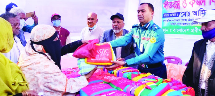 সিএমপি ও আঞ্জুমান মুফিদুল ইসলাম চট্টগ্রামের যৌথ উদ্যোগে শীতবস্ত্র বিতরণ গতকাল মঙ্গলবার মোহরা প্রবীণ হিতৈষী সংঘ চট্টগ্রাম বিভাগীয় র্কাযালয়ে অনুষ্ঠিত হয়।এতে প্রধান অতিথি ছিলেন সিএমপি উপ-পুলিশ কমিশনার (সদর) মো. আমির জাফর। বিশেষ অতিথি ছিলেন মোরশেদুল আলম কাদেরী। উপস্থিত ছিলেন মতিলাল দেওয়ানজী ,হারুনুর রশিদ, হাবিবুর রহমান চৌধুরী, আইয়ুব আলী চৌধুরী,ইঞ্জিঃ সরওয়ার খান প্রমুখ। সভায় আঞ্জুমান মুফিদুল ইসলাম চট্টগ্রাম ও প্রবীণ হিতৈষী সংঘ চট্টগ্রাম বিভাগীয় শাখার পক্ষ থেকে চট্টগ্রাম মেট্রোপলিটান পুলিশকে ধন্যবাদ জ্ঞাপন করা হয়। প্রেস বিজ্ঞপ্তি।