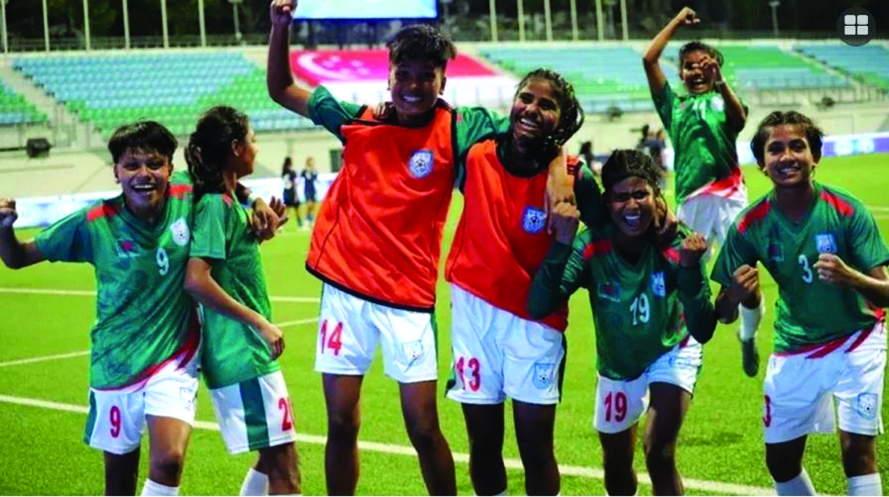 বাংলাদেশ এবং সিঙ্গাপুর দুই দলই গোল উৎসব সেরেছিল তুর্কমেনিস্তানের জালে। তবে সিঙ্গাপুর গোল দিয়েছিল একটি বেশি। তাই গ্রুপ সেরা হতে এ ম্যাচে জয় ছাড়া বিকল্প কোনো পথ খোলা ছিল না বাংলাদেশের সামনে। লক্ষ্যপূরণের মিশনে নেমে দারুন উপভোগ্য ফুটবল খেলল বাংলাদেশের মেয়েরা। আর তাতেই এএফসি অনূর্ধ্ব–১৭ এশিয়ান কাপের বাছাইয়ের দ্বিতীয় ধাপে উঠল বাংলাদেশের তরুণীরা। সিঙ্গাপুরের জালান বেসার স্টেডিয়ামে গতকাল রোববার ‘ডি’ গ্রুপে নিজেদের দ্বিতীয় ও শেষ ম্যাচে স্বাগতিক সিঙ্গাপুরকে ৩–০ গোলে হারিয়েছে বাংলাদেশ। এর ফলে টানা দুই জয়ে ৬ পয়েন্ট নিয়ে গ্রুপ সেরা হয়ে বাছাইয়ের দ্বিতীয় ধাপে উঠল লাল–সবুজ জার্সিধারীরা।