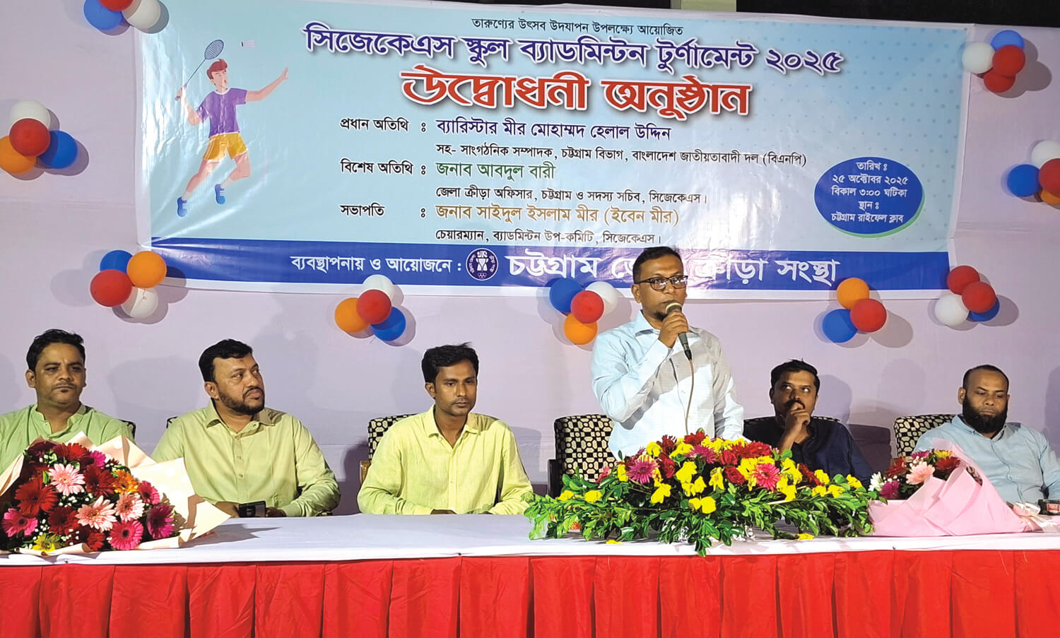 চট্টগ্রাম জেলা ক্রীড়া সংস্থার ব্যবস্থাপনায় তারুণ্যের উৎসব উদযাপন উপলক্ষে আয়োজিত সিজেকেএস স্কুল ব্যাডমিন্টন টুর্নামেন্ট চট্টগ্রাম রাইফেল ক্লাবে শুরু হয়েছে। গত ২৫ অক্টোবর বিকালে ভিডিও কনফারেন্সের মাধ্যমে প্রধান অতিথি হিসেবে এ টুর্নামেন্টের উদ্বোধন করেন বাংলাদেশ জাতীয়তাবাদী দলের চট্টগ্রাম বিভাগীয় সহ–সাংগঠনিক সম্পাদক ব্যারিস্টার মীর মোহাম্মদ হেলাল উদ্দিন। বিশেষ অতিথি ছিলেন জেলা ক্রীড়া অফিসার, চট্টগ্রাম ও সদস্য সচিব, সিজেকেএস আবদুল বারী। সিজেকেএস ব্যাডমিন্টন উপ–কমিটির চেয়ারম্যান সাইদুল ইসলাম মীর (ইবেন মীর) এর সভাপতিত্বে অনুষ্ঠানে স্বাগত বক্তব্য রাখেন সিজেকেএস ব্যাডমিন্টন উপ–কমিটির সম্পাদক মোস্তফা মোহাম্মদ জাবেদ। এসময় উপস্থিত ছিলেন সিজেকেএস এ্যাডহক কমিটির সদস্য আরিফ মঈনুদ্দিন, রিফাত বিন আনোয়ার, সিজেকেএস কাউন্সিলর প্রসেনজিৎ দত্ত রাজু, সিজেকেএস ব্যাডমিন্টন কমিটির ভাইস চেয়ারম্যান লায়ন সালাউদ্দিন আলী ও তানভীর আহমেদ চৌধুরী, সদস্য রাকিব উদ্দিন, মোহাম্মদ সাইফুল্লাহ, মোহাম্মদ জাহিদ, এস এস এম সাজ্জাদ উল্লাহ, আবদুল্লাহ আল ফরহাদ জাকি, আশরাফুল কাদের চৌধুরী প্রমুখ। এবারের স্কুল ব্যাডমিন্টন টুর্নামেন্টে ২১টি স্কুল অংশগ্রহণ করছে।