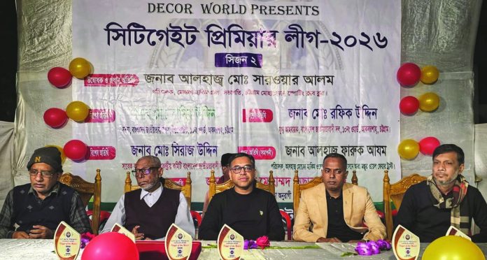 ডেকর ওয়ার্ল্ড নিবেদিত সিটি গেট প্রিমিয়ার লিগ সিজন–২ টুর্নামেন্ট গত ১৬ জানুয়ারি শুরু হয়েছে। টুর্নামেন্টের উদ্বোধন করেন প্রধান অতিথি চট্টগ্রাম মোহামেডান স্পোর্টিং ক্লাব ব্লুুজের সভাপতি, মোস্তফা হাকিম গ্রুপের পরিচালক, সমাজসেবক ও শিক্ষানুরাগী আলহাজ্ব মোহাম্মদ সরোয়ার আলম। তিনি বলেন, মাদক ও অপরাধ থেকে বেঁচে থাকার একমাত্র অবলম্বন খেলাধুলা, শরীরচর্চা ও সংস্কৃতিচর্চা করা। তিনি বলেন, ক্রিকেটারদের প্রতিভা বিকাশের সুযোগ এই টুর্নামেন্টের মাধ্যমে সৃষ্টি হল, তা অব্যাহত রাখতে হবে। তিনি স্থানীয় যুবকদের খেলাধুলায় মনোনিবেশ করার জন্য আহ্বান জানান। উদ্বোধনী অনুষ্ঠানে বিশেষ অতিথি ছিলেন ছাত্রদলের কেন্দ্রীয় কমিটির সাবেক সদস্য মোহাম্মদ সিরাজ উদ্দিন। সমাজসেবক নেছার আহমদের সভাপতিত্বে এবং ক্রীড়া সংগঠক মোহাম্মদ রাসেলের সঞ্চালনায় উদ্বোধনী অনুষ্ঠানে বক্তব্য দেন ১০ নং ওয়ার্ড বিএনপি যুগ্ম আহ্বায়ক মোহাম্মদ রফিক উদ্দিন চৌধুরী, সদস্য মোহাম্মদ নাসির উদ্দিন, টুর্নামেন্টের আয়োজক মো. শহিদুল ইসলাম, ইশতিয়াক আলী তানভীর, রবিন হাসান ও মো. সোহেল প্রমুখ। উদ্বোধনী দিনে টাইটানের বিপক্ষে জয়লাভ করে টাইগার।