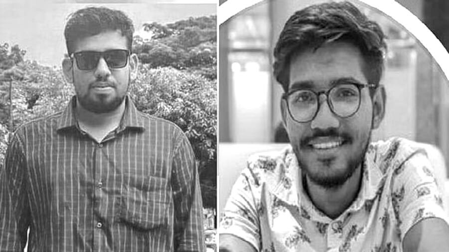 গত বৃহস্পতিবার রাত ১১টার দিকে উপজেলার ইসলামপুরের কালা সাদেক এলাকার একটি সড়কের টোল বক্সের সামনে থেকে তাদের আটক করা হয় বলে জানান ওই থানার উপপরিদর্শক আসাদুল ইসলাম। আটকরা হলেন : ময়মনসিংহ সদর উপজেলার রাম বাবু রোডের সাজিদ সাকিব (২২) ও ঢাকার বাড্ডা থানা এলাকার পূর্ব বাড্ডা বড়টেকের পায়ড়া স্কুল রোডের মাহমুদ সাকিব (২১)। তারা দুজনই শাহজালাল বিশ্ববিদ্যালয়ের কম্পিউটার সায়েন্স অ্যান্ড ইঞ্জিনিয়ারিং বিভাগের ২০২০–২১ সেশনের শিক্ষার্থী বলে জানিয়েছেন বিশ্ববিদ্যালয়ের প্রক্টর কামরুজ্জামান চৌধুরী। খবর বিডিনিউজের।