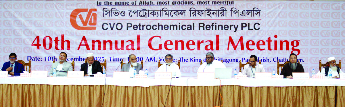 সিভিও পেট্রোক্যামিকেল রিফাইনারী পিএলসির ৪০তম বার্ষিক সাধারণ সভা (এজিএম) গত ১০ ডিসেম্বর স্থানীয় একটি কমিউনিটি হলে অনুষ্ঠিত হয়। কোম্পানির পরিচালনা পর্ষদের চেয়ারম্যান শামসুল আলম শামীমের সভাপতিত্বে সভায় উপস্থিত ছিলেন কোম্পানির ব্যবস্থাপনা পরিচালক এ এইচ এম হাবিব উল্লাহ, পরিচালকবৃন্দ মো. আলী মরতুজা, মো. এমরানুল হক, জোবেদা খানম শাফী, মোহাম্মদ মহসিন সাকি, স্বতন্ত্র পরিচালক ইঞ্জিনিয়ার মোহাম্মদ মিজবাহুর রহমান, চৌধুরী মোহাম্মদ হারূণ, কোম্পানির নির্বাহী পরিচালক ও চীফ অডিটর আহমদুল হক হাসান, অডিটর মেসার্স কেএম হাসান এন্ড কোং এর প্রতিনিধি মো. আমিরুল ইসলাম, প্রধান হিসাব কর্মকর্তা মোহাম্মদ আবু তালেব। উপব্যবস্থাপনা পরিচালক ও কোম্পানি সচিব খাজা মঈন উদ্দিন হোসেন উক্ত সভা সঞ্চালনা করেন এবং তিনি সভার আলোচ্যসূচি সমূহ উপস্থাপনের পাশাপাশি প্রাপ্ত ভোটের ফলাফল ঘোষণা করেন।