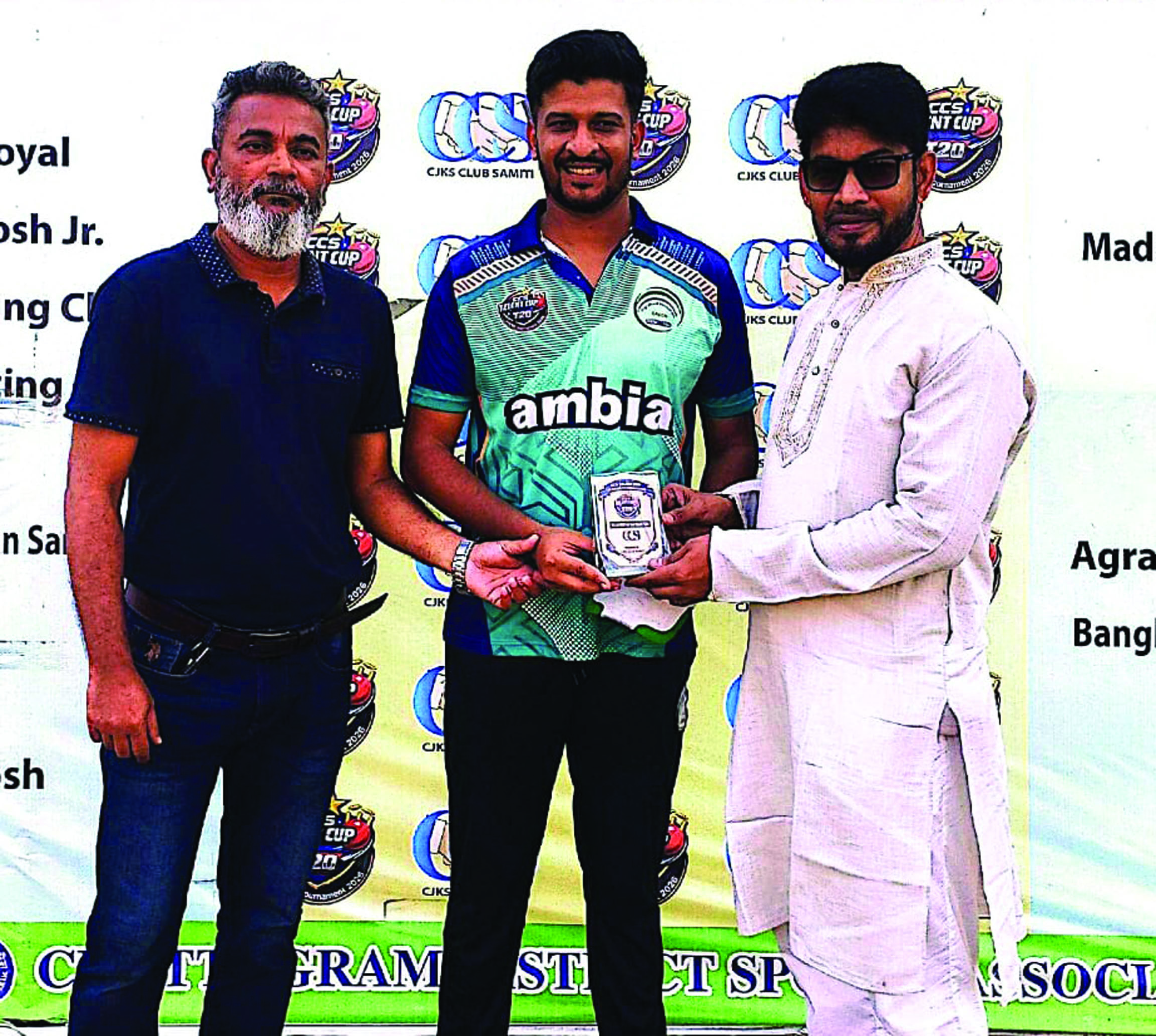 সিসিএস ট্যালেন্ট কাপ টি–টোয়েন্টি ক্রিকেট টুর্নামেন্টের ৫ম রাউন্ডে ‘ডি’ গ্রুপে গতকাল মঙ্গলবারে দুটি খেলার একটি অনুষ্ঠিত হয়েছে। অপর খেলাটি ভেজা পিচের জন্য পরিত্যক্ত হয়। চট্টগ্রাম জেলা স্টেডিয়ামে দিনের প্রথম খেলা ছিল বাংলাদেশ রেলওয়ে রেঞ্জার্স এবং কে এম স্পোর্টিং ক্লাবের মধ্যে। আগের রাতে বৃষ্টির কারণে পিচ ভেজা থাকায় খেলার অনুপযুক্ত হয়। আম্পায়াররা বেশ কিছুক্ষণ অপেক্ষা করে খেলা পরিত্যক্ত ঘোষণা করেন। এতে করে দু’দলের মধ্যে পয়েন্ট ভাগ হয়ে যায়। ফলে কপাল পোড়ে কে এম স্পোর্টিং ক্লাবের। সামনে এগিয়ে যাবার সম্ভাবনা দুর্ভাগ্যের কবলে পড়ে নষ্ট হয়ে যায় তাদের। খেলায় জিতলে তারা প্রতিদ্বন্দ্বী আগ্রাবাদ নওজোয়ান গ্রিনের সাথে সেমিফাইনালে উঠার লড়াইয়ে পাল্লা দিতে পারতো। পাঁচ খেলা শেষে তাদের পয়েন্ট হয়েছে ৭। অন্যদিকে একই গ্রুপে আগ্রাবাদ নওজোয়ান গ্রিন ১০ উইকেটে চট্টগ্রাম আবাহনী জুনিয়রকে পরাজিত করে। ফলে পাঁচ খেলা শেষে ৮ পয়েন্ট নিয়ে তারা গ্রুপ শীর্ষে থেকে সেমিফাইনালে উত্তীর্ন হলো। দিনের দ্বিতীয় এই খেলাটি বিকালে দেরীতে অনুষ্ঠিত হলে ৮ ওভারে নির্ধারন করা হয়। টসে হেরে আবাহনী জুনিয়র প্রথমে ব্যাট করে। ৮ ওভারে ৮ উইকেটে তারা ২৯ রান সংগ্রহ করে। দলের হয়ে দুই অংকের ঘরে পৌঁছান শুধুমাত্র শাহিদুল ইসলাম। তিনি ১৯ বলে এক ছক্কায় ১৪ রান করেন। নওজোয়ান গ্রীনের পক্ষে ২টি করে উইকেট নেন রকিব উদ্দিন এবং রাফিউল আলম। ১টি উইকেট পান শফিউল আলম। জবাবে আগ্রাবাদ নওজোয়ান গ্রিন ৫.১ ওভার খেলেই বিনা উইকেটে ৩০ রানে পৌঁছে যায়। দুই ওপেনার আইয়ুব বাবু এবং ইমতিয়াজুল হক অপরাজিত থাকেন যথাক্রমে ১৫ এবং ১৩ রান নিয়ে। প্লেয়ার অব দি ম্যাচ হন রকিবউদ্দিন। তিনি ২ ওভার বল করে ১ মেডেন ১ রান দিয়ে ২টি উইকেট তুলে নেন। তার হাতে পুরস্কার তুলে দেন সিজেকেএস কাউন্সলর ফারুক আহমেদ এবং সাবেক ক্রিকেটার মর্তুজা রায়হান মিঠু।
