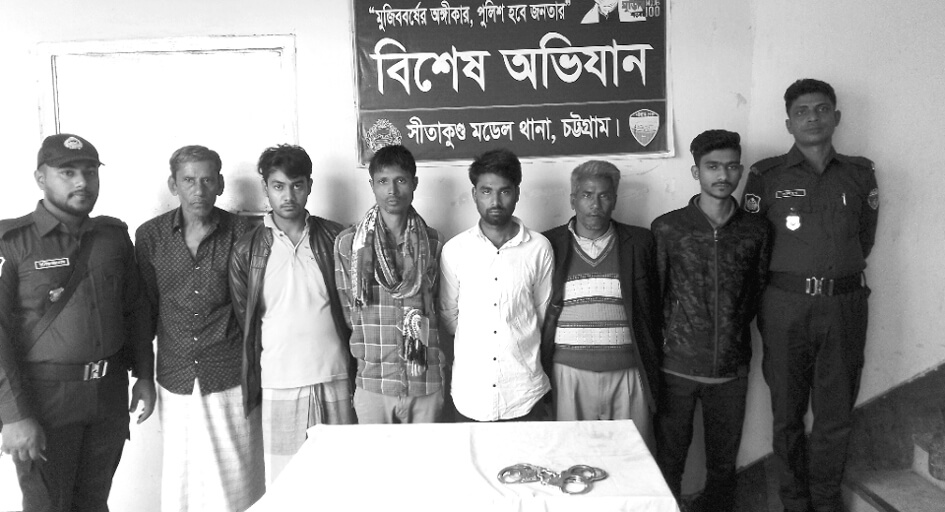 গ্রেপ্তারকৃতরা হলেন জঙ্গল সলিমপুর এলাকার বাসিন্দা আলম ওরফে গলাকাটা আলম (৫৫),একই থানার বাঁশবাড়িয়া এলাকার বাসিন্দা মো.আলী হোসেন (২৫),দক্ষিণ ঘোড়ামারা এলাকার বাসিন্দা ইমাম হোসেন ছোট্টু (৩৫),কুমিরার নিউ রাজাপুর এলাকার বাসিন্দা মো. ইয়াকুব আলী (৩৫), মুরাদপুর এলাকার বাসিন্দা মো.তারেক (২৫), পৌরসদরস্থ দক্ষিণ মহাদেবপুর এলাকার বাসিন্দা মো.আবু জাফর খাঁন (৪৫)।