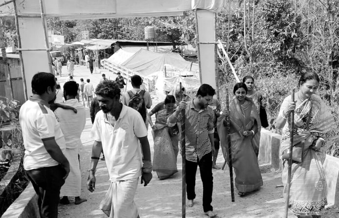 আমাদের সীতাকুণ্ড প্রতিনিধি জানান : মহেশখালীর মৈনাক পর্বতের চূড়ায় অবস্থিত ঐতিহাসিক আদিনাথ মন্দিরে ঢল নেমেছে হাজারো পুণ্যার্থীর। শিবচতুর্দশী তিথি উপলক্ষে আয়োজিত এই পূজা ও মেলায় দেশবিদেশের বিভিন্ন প্রান্ত থেকে আসা সনাতন ধর্মাবলম্বীদের পদচারণায় মুখরিত হয়ে উঠেছে পুরো মন্দির প্রাঙ্গণ। গতকাল ১৫ ফেব্রুয়ারি রবিবার ভোর থেকেই পুণ্যার্থীরা ডাব, দুধ, কবুতর , বেলপাতা ও ফুল নিয়ে মন্দিরের পাহাড়ে আরোহণ শুরু করেন। বেলা বাড়ার সাথে সাথে ভক্তদের ভিড় মন্দির ছাড়িয়ে পাহাড়ের পাদদেশ পর্যন্ত বিস্তৃত হয়। মহেশখালী থানার অফিসার ইনচার্জ মুজিবুর রহমান জানান, মেলা ও পূজা নির্বিঘ্ন করতে স্থানীয় প্রশাসন ও পুলিশের পক্ষ থেকে তিন স্তরের নিরাপত্তা ব্যবস্থা গ্রহণ করা হয়েছে। সিসিটিভি ক্যামেরা ও সাদা পোশাকে গোয়েন্দা নজরদারি বাড়ানো হয়েছে।