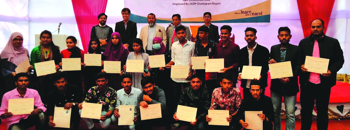 ইউসেপ বাংলাদেশ দেশের পিছিয়ে পড়া বেকার যুব সমাজকে কর্মমুখী প্রশিক্ষণ প্রদানের মাধ্যমে শ্রমবাজার উপযোগী দক্ষ জনশক্তি তৈরিতে নিয়মিত কাজ করে যাচ্ছে। সে প্রেক্ষিতে গত ২৯ ডিসেম্বর ইউসেপ, চট্টগ্রাম অঞ্চলের আমবাগান টেকনিক্যাল স্কুলে প্রশিক্ষণপ্রাপ্ত ছাত্রছাত্রীদের মাঝে সনদপত্র বিতরণ অনুষ্ঠিত হয়। সনদপত্র বিতরণে প্রধান অতিথি ছিলেন ক্লিফটন গ্রুপের ব্যবস্থাপনা পরিচালক এমডিএম মহিউদ্দিন চৌধুরী। স্বাগত বক্তব্য দেন, ইউসেপ, চট্টগ্রাম অঞ্চলের আঞ্চলিক ব্যবস্থাপক প্রকৌশলী জয় প্রকাশ বড়ুয়া। ডিসেন্ট এমপ্লেমেন্ট টিমের টিম লিডার মোহাম্মদ আবদুল মান্নানের পরিচালনায় ও লুৎফর নাহারের সঞ্চালনায় অনুষ্ঠানে বিশেষ অতিথি ছিলেন অফকার নির্বাহী পরিচালক মো. আলমগীর। আলোচনা সভার পর প্রধান অতিথি ইউসেপ আমবাগান টেকনিক্যাল স্কুলের এইচএসবিসি প্রজেক্টের ইলেকট্রিকেল ইনস্টলেশন অ্যান্ড মেইনটেনন্স এবং সুয়িং মেশিন অপারেটর থেকে প্রশিক্ষণপ্রাপ্ত প্রায় ২০০ জন ছাত্র/ছাত্রীকে সনদপত্র প্রদান করেন। প্রেস বিজ্ঞপ্তি।