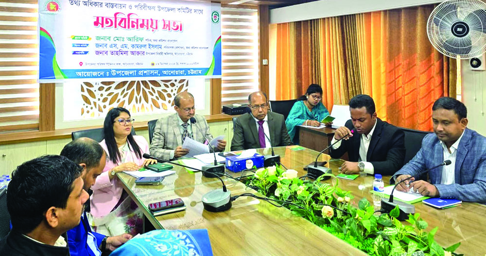 তথ্য অধিকার বাস্তবায়ন ও পরিবীক্ষণ আনোয়ারা উপজেলা কমিটির প্রতিনিধিবৃন্দের অংশগ্রহণে এক মতবিনিময় সভা গতকাল শনিবার সকালে উপজেলা পরিষদ সম্মেলন কক্ষে অনুষ্ঠিত হয়। উপজেলা নির্বাহী অফিসার তাহমিনা আক্তারের সভাপতিত্বে সভায় প্রধান অতিথি ছিলেন তথ্য কমিশনের সচিব মো. আরিফ। বিশেষ অতিথি ছিলেন তথ্য কমিশনের পরিচালক (প্রশাসন) এস.এম কামরুল ইসলাম। বক্তব্য রাখেন আনোয়ারা উপজেলা সহকারী কমিশনার (ভূমি) হুসাইন মুহাম্মদ প্রমুখ।