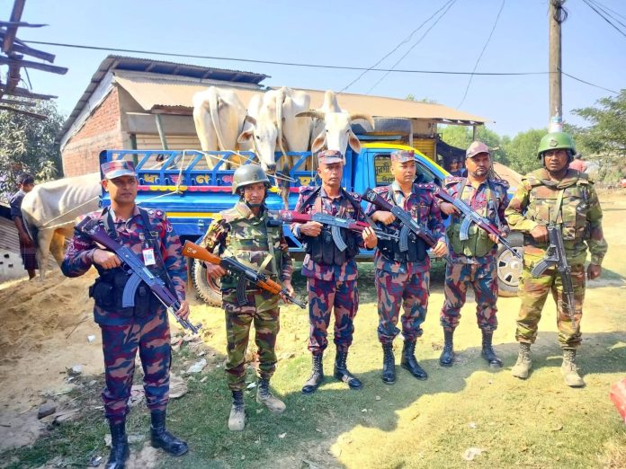২৭ জানুয়ারি সকালে গোপন সংবাদের ভিত্তিতে ২৪ বীর ব্যাটালিয়ন পরিচালিত অভিযানে এই সফল ব্যবস্থা নেওয়া হয়। অভিযান শেষে জব্দকৃত গরু, ট্রাক এবং আটককৃতদের আইনগত প্রক্রিয়ার পর ৩০ বিজিবির কাছে হস্তান্তর করা হয়েছে।