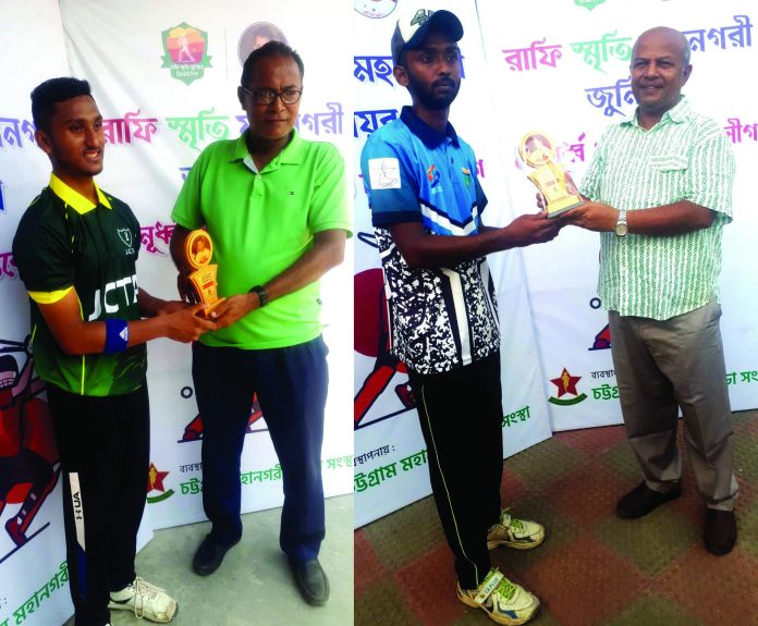 রাফি স্মৃতি মহানগরী জুনিয়র (অনূর্ধ্ব–১৮) ক্রিকেট লিগে সেমিফাইনালে উঠেছে জুনিয়র ট্রেনিং ক্রিকেট একাডেমি এবং বাদশা মিয়া স্মৃতি সংসদ। গতকাল শনিবার দামপাড়া পুলিশ লাইনস্ মাঠে অনুষ্ঠিত প্রথম কোয়ার্টার ফাইনাল খেলায় এ জুনিয়র ক্রিকেট ট্রেনিং একাডেমি ৩৯ রানে ইস্পাহানি ক্রিকেট একাডেমিকে পরাজিত করে। টসে জিতে ইস্পাহানি প্রথমে ফিল্ডিং করতে নামে। আর ব্যাট করতে নামে জুনিয়র ক্রিকেট ট্রেনিং একাডেমি। নির্ধারিত ২০ ওভার খেলে ৮ উইকেট হারিয়ে জুনিয়র ক্রিকেট ট্রেনিং একাডেমি ১৩৪ রান সংগ্রহ করে। দলের পক্ষে সর্বোচ্চ ২৯ রান করে ইসফাজুর রহমান। এছাড়া ইমতিযাজ হক ২৪,মিসবাউল হক ১৭ এবং সোহাইল আনাম ১৪ রান করেন। অতিরিক্ত রান হয় ১৫। ইস্পাহানীর পক্ষে শাহরাজ জামাল ৩টি এবং ইব্রাহিম ইভান ২টি উইকেট লাভ করে। জবাবে ইস্পাহানী ক্রিকেট একাডেমি সব উইকেট হারিয়ে ৯৯ রান সংগ্রহ করে। ইস্পাহানীর পক্ষে নুরুজ্জামান মিয়া সর্বোচ্চ ৩৭ এবং আকিল ইবনে আজিজ ১৮ রান করে। অতিরিক্ত রান হয় ১৮। জুনিয়র ক্রিকেট ট্রেনিং একাডেমির জুনায়েদুল ইসলাম,অন্তর চন্দ্র এবং আদিল চৌধুরী প্রত্যেকে ৩টি করে উইকেট নেয়। এতে ম্যাচ অফ দ্যা ম্যাচ হয় জুনায়েদুল ইসলাম। তার হাতে ক্রেষ্ট তুলে দেন সাবেক ফুটবলার এবং ক্রীড়া সাংবাদিক দেবাশীষ বড়ুয়া দেবু। একই মাঠে দিনের দ্বিতীয় কোয়ার্টার ফাইনাল খেলায় বাদশা মিয়া স্মৃতি সংসদ ৮ উইকেটে মিরসরাই ক্রিকেট একাডেমিকে পরাজিত করে । টসে জিতে বাদশা মিয়া স্মৃতি সংসদ প্রথমে ব্যাট করতে পাঠায় মিরসরাই ক্রিকেট একাডেমিকে। তারা নির্ধারিত ২০ ওভারে ৯ উইকেট হারিয়ে ১০৯ রান সংগ্রহ করে। দলের আব্দুল্লাহ শাহরিয়া ৪৮ এবং মেহেদি হাসান ৩৩ রান করে। অতিরিক্ত রান হয় ১৩। বাদশা মিয়া স্মৃতি সংসদের পক্ষে মো. ইয়াসিন ৩টি এবং মো. জুনায়েদ ২টি উইকেট লাভ করে।