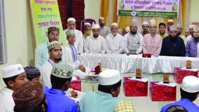 কর্ণফুলী উপজেলা বড়উঠান মৌলভী বাড়ীতে সৈয়দা হোসনে আরা–আলম খান ফাউন্ডেশনের ব্যবস্থাপনায় গত ৬ মার্চ কোরআন তেলাওয়াত, হামদ্–নাত ও আযান প্রতিযোগিতার পুরস্কার বিতরণ ও ইফতার বিতরণ মোহাম্মদ মোকাম্মেল হক খানের সভাপতিত্বে ও মিনহাজ উদ্দিন খানের পরিচালনায় অনুষ্ঠিত হয়। এতে প্রধান অতিথি ড. মোহাম্মদ খলিলুর রহমান। বিশেষ অতিথি ছিলেন সমাজ সেবক মোছলেহ উদ্দিন খান এমদাদ। উপস্থিত ছিলেন মো. মেজবাহ উদ্দিন খান, মো. রেজাউল হক খান, মো. মিজানুল হক খান, মহেরাব হোসেন খান উজ্জল, এখলাছুর রহমান খান, তৌফিক হোসেন বায়জিদ, ইউপি মেম্বার সাজ্জাদ হোসেন খান সুমন, ব্যাংকার এহতেশামুল হক খান, কারী ইউনুছ উদ্দিন নুরী, মাইছুর হাবিব সাদ, লিয়াকত হোসেন খান খোকন, আলিমুল্লা খান, বদরুদ্দিন খান, মো. ছারকিচ হোসেন খান তিহাম, হুমায়ুন আহমদ খান, মো. জহির উদ্দিন টিপু, মো. সোহেল, খান আলী আজম সিদ্দিকি রিমন, রাকিব, অসিউর রহমান, কলিম উল্লা খান, শাব্বির। প্রধান অতিথি বলেন, রমজানের শিক্ষা নিয়ে মানুষ ব্যাক্তিগত, পারিবারিক, সামাজিক এবং রাষ্ট্রীয় জীবনের প্রতিটি ক্ষেত্রে নিজেদের পরিচালিত করলে সমাজ থেকে দুর্নীতি জুলুম অন্যায় সকল মন্দ কাজের অবসান ঘটবে। ফাউন্ডেশনের চেয়ারম্যান মোহাম্মদ মোকাম্মেল হক খান হাসপাতাল নির্মাণে বিত্তবানদের এগিয়ে আসার আহবান জানান। বিচারক ছিলেন মোহাম্মদ সরওয়ার আলম আলক্বাদেরী, মুহাম্মদ মনছুরুল হক খান, হাফেজ মুহাম্মদ মোরশেদ, হাফেজ মোহাম্মদ আব্দুল্লাহ। প্রেস বিজ্ঞপ্তি।