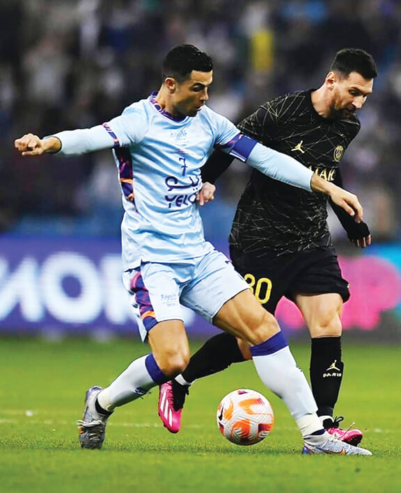 অতিথি হয়ে সেখানে গিয়েছিলেন তিনি। মাঠে দু’দলের ফুটবলারদের সঙ্গে হাত মেলালেন। মেসি ও রোনালদোর সঙ্গে হাত মেলানোর সময় তাকে একটু বেশিই উত্তেজিত বলে মনে হচ্ছিল। খেলার অনেক আগে থেকেই ছিল উন্মাদনা। মাঠ ছিল কানায় কানায় ভর্তি। খেলায় অবশ্য কেউ কাউকে এক ইঞ্চি জমি ছাড়লেন না। ফিফা বিশ্বকাপে যেখানে শেষ করেছিলেন, ঠিক সেখানেই শুরু করলেন মেসি। ৩ মিনিটের মাথায় গোল করে ফেললেন তিনি। বক্সের বাইরে থেকে নেইমারের ঠিকানা লেখা পাসে সৌদির জাতীয় দলের গোলরক্ষক আল–ওয়াইসকে আরও এক বার পরাস্ত করলেন মেসি।