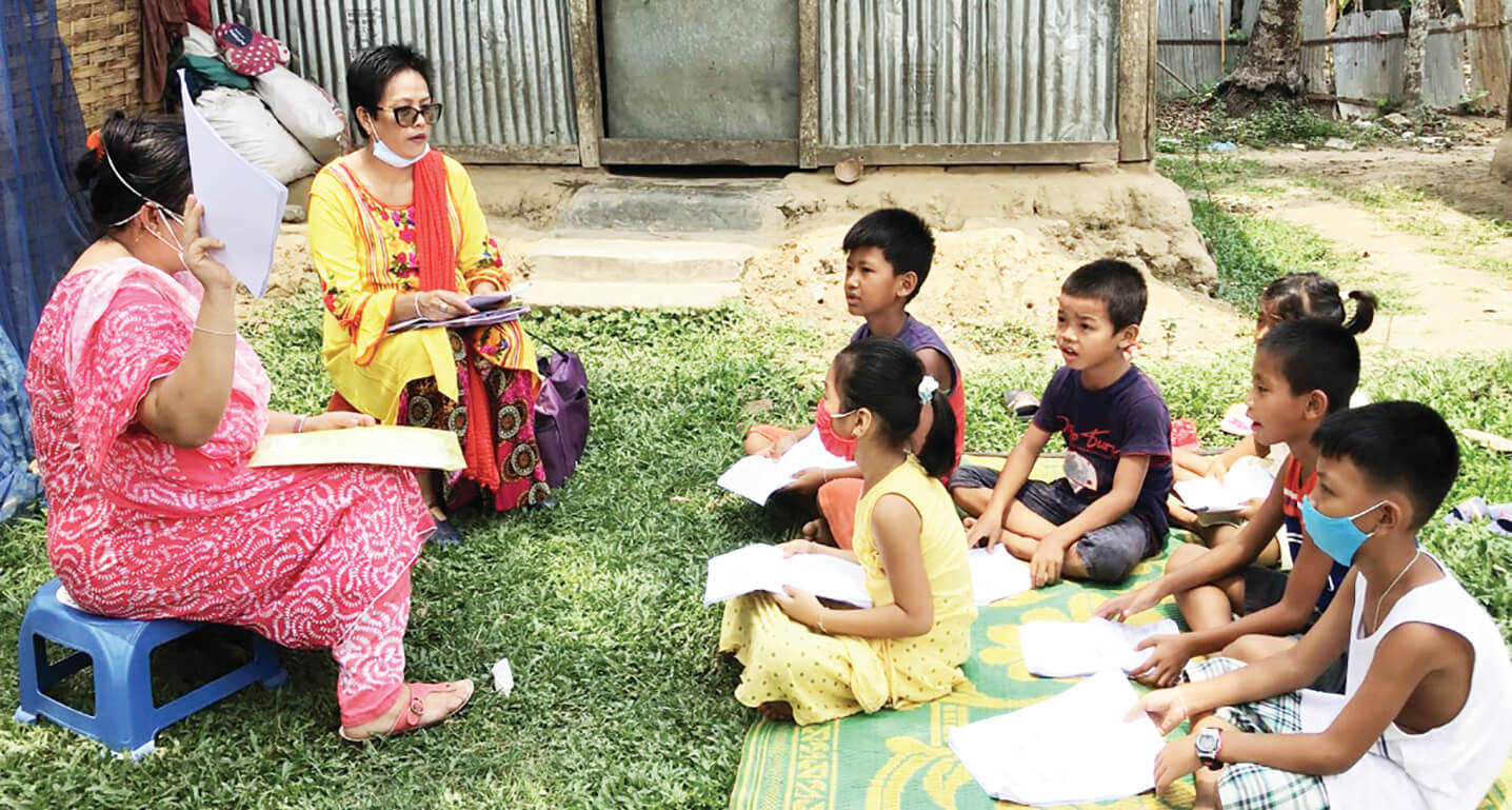 মহামারীর কারণে ২০২০ সালে ২২ মার্চ থেকে দেশের সব শিক্ষা প্রতিষ্ঠান বন্ধ রয়েছে। প্রাথমিক বিদ্যালয় বন্ধ থাকায় অনলাইন, টেলিভিশন ও বেতারের মাধ্যমে পাঠদানের উদ্যোগ নেয় সরকার। তবে দুর্গম পাহাড়ে ইন্টারনেট ও বিদ্যুৎ সুবিধা না থাকায় বঞ্চিত হচ্ছে শিক্ষার্থীরা। এছাড়া আর্থিক সামর্থ্যের অভাবে স্মার্টফোন না থাকায় বঞ্চিত হয়েছে অনেক শিক্ষার্থী। সব শিক্ষার্থী যাতে পাঠদানের আওতায় আসে সেজন্য গ্রামে গ্রামে গিয়ে পাঠদান করাচ্ছেন শিক্ষকরা। প্রতিদিনই বিভিন্ন উপদলে বিভক্ত হয়ে বাড়িতে গিয়ে ওয়ার্কশিটের মাধ্যমে পাঠপরিকল্পনা বুঝিয়ে দিচ্ছেন। এক সপ্তাহ পরে সেই পাঠ শিক্ষার্থীদের কাছ থেকে আদায় করছেন। এ কাজে শিক্ষার্থীদের অভিভাবকদের সম্পৃক্ত করা হয়েছে। এমন কার্যক্রমে খুশি শিক্ষার্থী ও অভিভাবকরা।