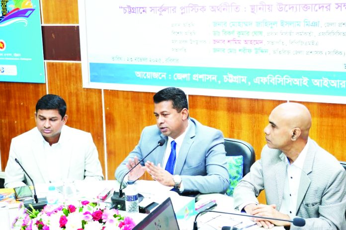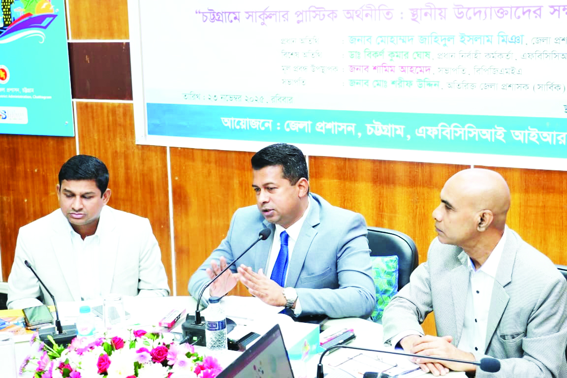পরিবেশবান্ধব শিল্পায়ন ও সার্কুলার অর্থনীতির প্রসারে স্থানীয় উদ্যোক্তাদের সক্ষমতা বৃদ্ধির লক্ষ্যে নগরীতে একটি কর্মশালা অনুষ্ঠিত হয়েছে। গতকাল জেলা প্রশাসকের সম্মেলন কক্ষে অনুষ্ঠিত ‘সার্কুলার প্লাস্টিক অর্থনীতি : স্থানীয় উদ্যোক্তাদের সক্ষমতা ও সুযোগ সৃষ্টি’ শীর্ষক কর্মশালার আয়োজন করেছে এফবিসিসিআই ইনোভেশন অ্যান্ড রিসার্চ সেন্টার, ইউএনডিপি বাংলাদেশ এবং চট্টগ্রাম জেলা প্রশাসন। অতিরিক্ত জেলা প্রশাসক (সার্বিক) মো. শরীফ উদ্দিনের সভাপতিত্বে অনুষ্ঠিত কর্মশালায় প্রধান অতিথি হিসেবে বক্তব্য রাখেন জেলা প্রশাসক জাহিদুল ইসলাম মিঞা। তিনি বলেন, সরকার, শিল্প ও শিক্ষাবিদদের সমন্বিত উদ্যোগে স্থানীয় উদ্ভাবক ও উদ্যোক্তাদের জন্য নতুন সুযোগ সৃষ্টি করবে। কর্মশালায় উপস্থিত অন্যান্য অতিথিরাও মতামত প্রদান করেন। স্বাগত বক্তব্যে এফবিসিসিআই আইআরসির প্রধান নির্বাহী কর্মকর্তা ড. বিকর্ণ কুমার ঘোষ বলেন, সার্কুলার প্লাস্টিক অর্থনীতি শুধু পরিবেশ সুরক্ষার জন্য নয়, স্থানীয় উদ্যোক্তাদের ব্যবসায়িক সুযোগও সমপ্রসারিত করবে। আমরা কর্মশালার মাধ্যমে উদ্যোক্তাদের দক্ষতা বৃদ্ধিতে এবং উদ্ভাবনী ধারণা বাস্তবায়নে সহায়তা করছি। মূল প্রবন্ধ উপস্থাপন করেন বিপিজিএমইএ’র সভাপতি শামিম আহমেদ। তিনি বলেন, সার্কুলার প্লাস্টিক অর্থনীতি স্থানীয় শিল্প ও স্টার্টআপদের জন্য নতুন বাজার ও ব্যবসায়িক সুযোগ সৃষ্টি করবে। পুনর্ব্যবহারযোগ্য প্লাস্টিক পণ্য উৎপাদন ও বর্জ্য ব্যবস্থাপনায় কার্যকরী নীতি গ্রহণ অত্যন্ত জরুরি। অতিরিক্ত জেলা প্রশাসক (সার্বিক) মো. শরীফ উদ্দিন উল্লেখ করেন, স্থানীয় উদ্যোক্তাদের জন্য সঠিক প্রশিক্ষণ ও প্রযুক্তিগত সহায়তা প্রদান করা হলে চট্টগ্রামে সার্কুলার অর্থনীতি শক্তিশালী হবে। কর্মশালায় সরকারী কর্মকর্তা, প্লাস্টিক কর্মী, স্থানীয় উদ্যোক্তা, শিল্পী, গবেষক এবং নীতি নির্ধারকসহ সংশ্লিষ্টরা উপস্থিত ছিলেন।