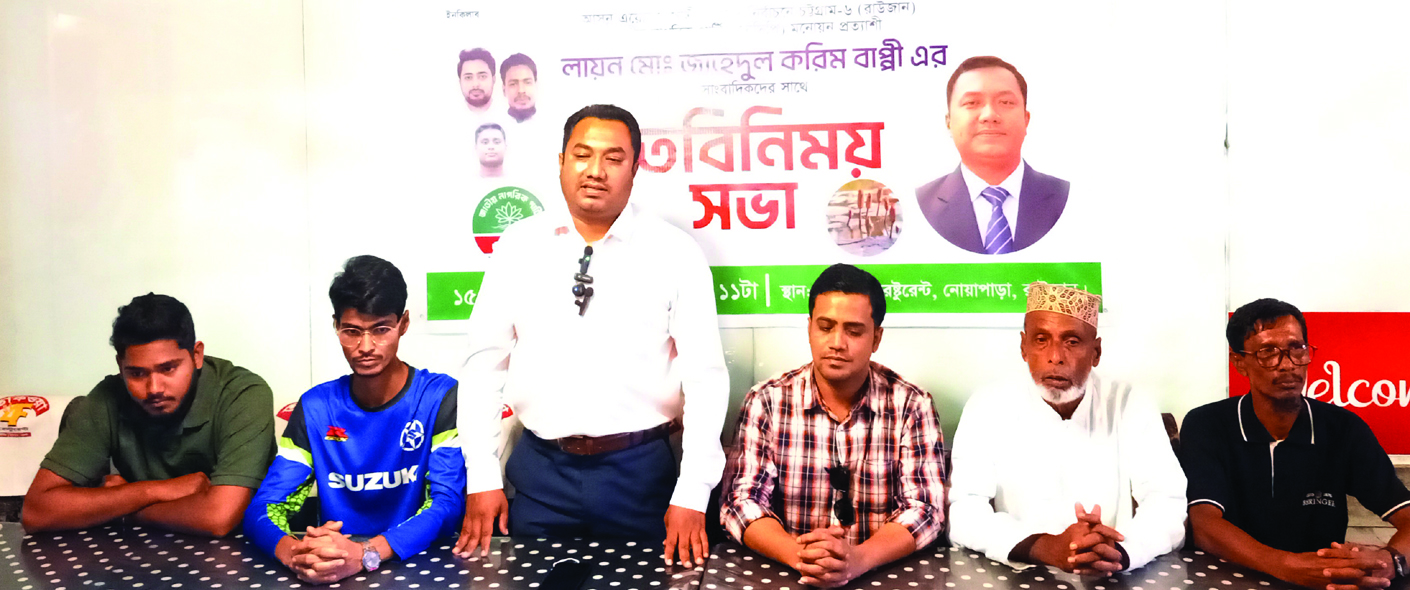রাউজানে কর্মরত সাংবাদিকদের সঙ্গে মতবিনিময় করেছেন জুলাই যোদ্ধা জাতীয় নাগরিক পার্টি (এনসিপি) মনোনয়ন প্রত্যাশী লায়ন মুহাম্মদ জাহেদুল করিম বাপ্পি। গতকাল শনিবার স্থানীয় একটি রেস্টুরেন্টে তিনি বলেন আসন্ন ত্রয়োদশ জাতীয় সংসদ নির্বাচনে চট্টগ্রাম–৬ আসন রাউজান থেকে তিনি নির্বাচন করার আশায় দলের কাজ থেকে মনোনয়ন ফরম নিয়েছেন। তিনি বলেন, রাউজানের দক্ষিাণাঞ্চলের মানুষ যুগে যুগে বৈষম্যের শিকার হয়ে আছে। তারা সন্ত্রাস, নৈরাজ্য স্বৈরচারের কবল থেকে মুক্তি চায়। এই উপজেলার মানুষের এই প্রত্যাশা একমাত্র পূরণ করতে পারে এই প্রজন্মের রাজনীতির ধারকবাহক এনসিপি। বৈষম্য বিরোধী সমাজ ব্যবস্থা প্রতিষ্ঠার সংকল্প নিয়ে তিনি এনসিপি থেকে নির্বাচন করার আশায় মনোনয়ন ফরম নিয়েছেন। মতবিনিময় কালে উপস্থিত ছিলেন উত্তর জেলা কমিটির সদস্য আরমান হোসাইন, উত্তর জেলা যুবশক্তি সংগঠক বেলাল বিন জসিম তাসকিন, এনসিপি নেতা শামসুল আলম, কর্মী জাহাঙ্গীর আলম, ইফতিয়ার হোসেন সিফাত, আয়াত উল্লাহ মুরাদ প্রমুখ।