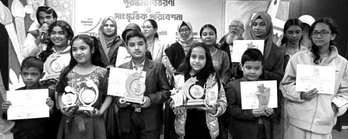 দখিনা প্রোডাকশন, দখিন হাওয়া এবং শিশু–কিশোর সংগঠন শৈশব ও শিক্ষার আয়োজনে স্বপ্নকুঁঁড়ি শিশু–কিশোর সাংস্কৃতিক প্রতিযোগিতা ২০২৫ এর পুরস্কার বিতরণ ও সাংস্কৃতিক পরিবেশনা গত ৩ জানুয়ারি নগরীর ফয়’স লেকে গ্যালারিয়া মিলনায়তনে অনুষ্ঠিত হয়। এতে সভাপতিত্ব করেন স্বপ্নকুঁড়ি শিশু–কিশোর সাংস্কৃতিক প্রতিযোগিতার আহ্বায়ক এবং রাইজ অ্যান্ড শাইন স্কুলের প্রতিষ্ঠাতা ফারহানা সারমিন। অনুষ্ঠানে অতিথি ছিলেন রাইজ অ্যান্ড শাইন স্কুলের চেয়ারম্যান অ্যাডভোকেট মো. রফিকুল ইসলাম। নাট্যজন ও আবৃত্তিশিল্পী সায়েম উদ্দীনের সঞ্চালনায় কবিতা আবৃত্তি করেন এম এ তাহসিন, নিলান্তিকা, ত্রিধা পাল মান ও স্বহৃদ্ধি চক্রবর্তী। নৃত্যশিল্পী সৌরভ ভট্টাচার্যের পরিচালায় নৃত্য পরিবেশন করে কালার্স একাডেমির ক্ষুদে নৃত্যশিল্পীরা। পুরস্কার বিতরণী পর্বে পুরস্কার ও সার্টিফিকেট গ্রহণ করেন জেমিমা খান, ত্রিধা পাল মান, ওয়াজিহা আয়েশা, উমামা রহমান, নিলান্তিকা বড়ুয়া, আদ্রি চৌধুরী, লামিয়া, সমৃদ্ধি চক্রবর্তী, স্বহৃদ্ধি চক্রবর্তী, সামিয়া প্রমুখ। প্রেস বিজ্ঞপ্তি।