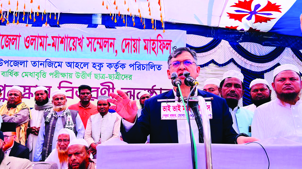 বিএনপির স্থায়ী কমিটির সদস্য ও কক্সবাজার–১ (চকরিয়া–পেকুয়া) আসনে বিএনপি মনোনীত সংসদ সদস্য প্রার্থী সালাহউদ্দিন আহমদ বলেছেন, স্বাক্ষরিত জুলাই জাতীয় সনদের পক্ষে আছে বিএনপি। ঐকমত্যের ভিত্তিতে যে জুলাই জাতীয় সনদ স্বাক্ষরিত হয়েছে, তা আমরা অক্ষরে অক্ষরে বাস্তবায়ন করব। জুলাই সনদের বাইরে আমাদের কোনো বক্তব্য নেই। যেটা জাতীয়ভাবে ঐকমত্য হবে, সে বিষয়ে আমরা ঐক্যবদ্ধ। যেটা ঐকমত্য হয়েছে, সেই বিষয়ে আমরা প্রতিশ্রুতিবদ্ধ। গতকাল বুধবার বেলা ১১টায় কঙবাজার পেকুয়া আশরাফুল উলুম মাদ্রাসা মাঠে পেকুয়া উপজেলা তানজিমে আহলে হক্ব আয়োজিত ওলামা–মাশায়েখ সম্মেলন ও ছাত্রছাত্রীদের পুরস্কার বিতরণ অনুষ্ঠানে প্রধান অতিথির বক্তব্যে তিনি এ কথা বলেন। সালাহউদ্দিন আহমদ বলেন, ইউনিয়ন পর্যায় থেকে রাষ্ট্র পর্যায় পর্যন্ত আলেম ওলামাদের প্রতিনিধিত্ব থাকবে, রাষ্ট্র পরিচালনায় আলেম ওলামাদের সুপরামর্শ নেওয়া হবে। দুটি ধর্মীয় উৎসবে উৎসব ভাতা প্রদানের ব্যবস্থা করা হবে। সবচেয়ে বড় কথা হলো, এই যে আলেমদের সম্মাননা দেয়ার গুরুত্বটা রাষ্ট্রীয়ভাবে অনুধাবন করা হলো– এটাই সবচেয়ে বড় সম্মাননা ও বড় স্বীকৃতি।