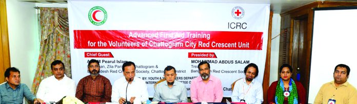বাংলাদেশ রেড ক্রিসেন্ট সোসাইটির যুব ও স্বেচ্ছাসেবক বিভাগের উদ্যোগে চট্টগ্রাম সিটি রেড ক্রিসেন্ট ইউনিটের সহযোগিতায় ইন্টারন্যাশনাল কমিটি অফ দ্যা রেড ক্রস’র (আইসিআরসি) আয়োজনে চট্টগ্রামে যুব রেড ক্রিসেন্ট স্বেচ্ছাসেবকদের অ্যাডভান্সড প্রাথমিক চিকিৎসা বিষয়ক চারদিনব্যাপী প্রশিক্ষণ গত ২৫ অক্টোবর শুরু হয়। উদ্বোধনী অনুষ্ঠানে প্রধান অতিথি ছিলেন জেলা রেড ক্রিসেন্ট ইউনিটের চেয়ারম্যান ও জেলা পরিষদ চেয়ারম্যান এ টি এম পেয়ারুল ইসলাম।