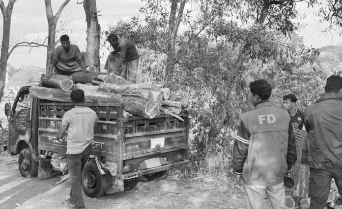 রাঙ্গুনিয়া উপজেলার পারুয়া–রাণীরহাট ডিসি সড়কের পাশে থাকা চারটি গাছ কেটে ফেলেছে দুর্বৃত্তরা। গতকাল বুধবার বিকালে খবর পেয়ে ঘটনাস্থল থেকে কাটা গাছগুলো জব্দ করেছে বন বিভাগ। বন বিভাগ সূত্রে জানা যায়, উপজেলার দক্ষিণ রাজানগর ইউনিয়নের ১ নম্বর ওয়ার্ড এলাকায় সড়কের পাশের গাছগুলো কে বা কারা কেটে রেখে যায়। পরে বিষয়টি জানাজানি হলে ইছামতী রেঞ্জ অফিসের বনকর্মীরা ঘটনাস্থলে গিয়ে গাছগুলো উদ্ধার করে জব্দ করেন। ইছামতী রেঞ্জ অফিস সূত্র জানায়, মোট চারটি মরা গাছ কাটা হয়েছে। ইছামতী রেঞ্জ কর্মকর্তা তৌহিদুল ইসলামকে কল করে পাওয়া যায়নি। রেঞ্জের অন্য একজন কর্মকর্তা বলেন, কারা গাছগুলো কেটেছে তা এখনো শনাক্ত করা যায়নি। ঘটনাস্থলে কাউকে পাওয়া যায়নি। অনুমতি ছাড়া এভাবে সড়কের পাশের গাছ কাটার সুযোগ নেই। আমরা গাছগুলো উদ্ধার করে হেফাজতে নিয়েছি।