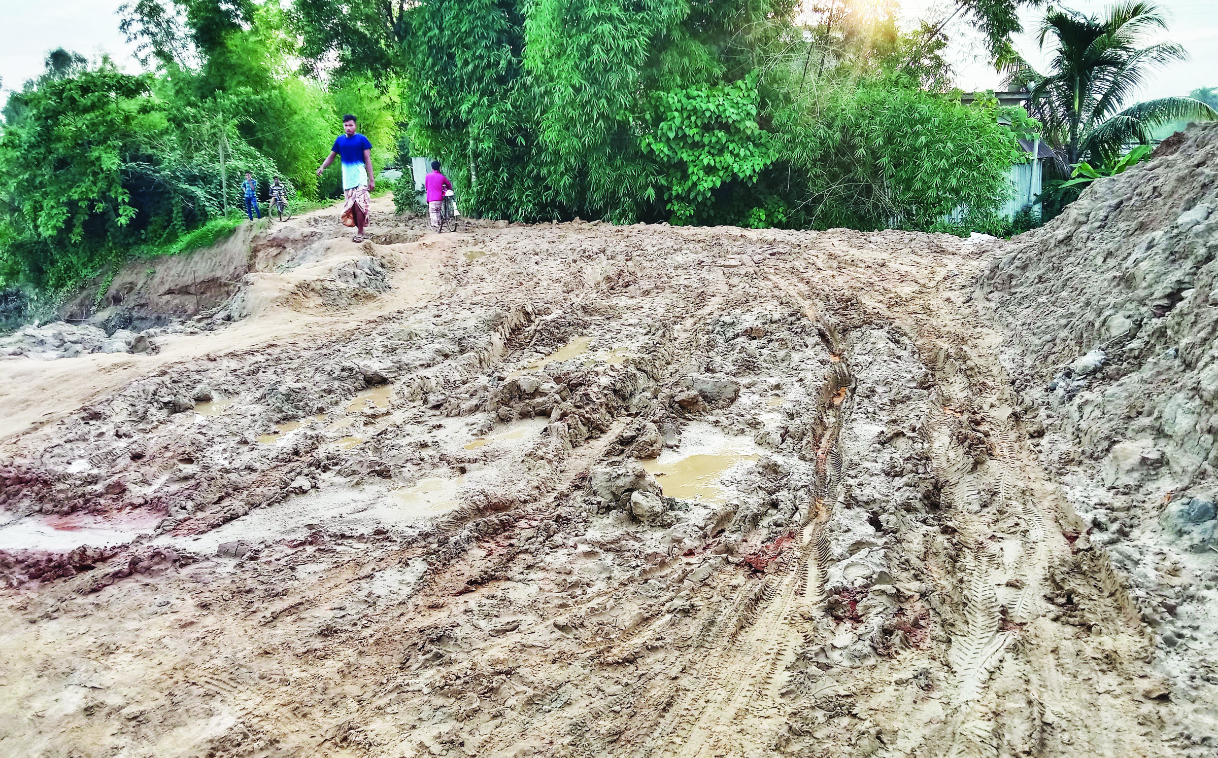 সরেজমিনে দেখা যায়, নির্মাণাধীন রেললাইনের সংযোগস্থল সড়কগুলোতে কাঁদায় একাকার। দেখে যেন মনে হয় চাষের জমি। আন্ডারপাসের সড়কে কর্দমাক্ত পানি জমে আছে। গাড়ি নিয়ে যাতায়াত করতে পারলেও আন্ডারপাস দিয়ে হেঁটে পারাপার হওয়া যাচ্ছে না। এছাড়া আধুনগর স্কুল সড়কের সংযোগস্থল দিয়ে কোনো মতে হেঁটে যাতায়াত করতে পারলেও কোনো যানবাহন এমনকি মোটরসাইকেল নিয়েও কর্দমাক্ত সড়কে পার হওয়া যাচ্ছে না। ফলে অনেক যাত্রীবাহী গাড়ি ওইস্থান থেকে পুনরায় ফেরত যেতে দেখা গেছে।