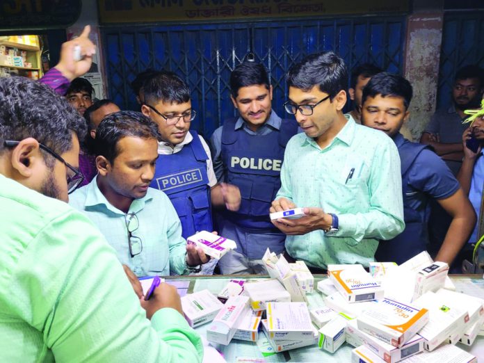 নির্বাহী ম্যাজিস্ট্রেট আরও বলেন, এরপর একই অভিযোগে নিরুপমা ড্রাগ হাউজ এবং রাজীব ড্রাগ হাউজে অভিযান চালাই। অভিযানে দুটি দোকান থেকে আনুমানিক আরও ৬ লাখ টাকার নষ্ট ইনসুলিন জব্দ করা হয়। পাশাপাশি রাজীব ড্রাগ হাউজে প্রচুর পরিমাণ টিটেনাস’এর টিকা পাওয়া যায়। এসবের গায়েও ২–৮ ডিগ্রি সেলসিয়াস তাপমাত্রায় সংরক্ষণ করা থাকলেও ফেলে রাখা হয়েছে সাধারণ তাপমাত্রায়। এ সকল অভিযোগে দুই দোকান মালিকের প্রত্যেককে ৩০ হাজার করে মোট ৬০ হাজার টাকা জরিমানা করেছি।