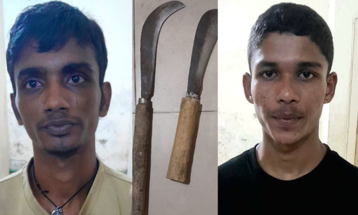 হাটহাজারীর এক মাদ্রাসা মাঠ থেকে মো. সালাম (১৭) ও মো. রাতুল ইসলাম (১৬) নামের দুই যুবককে আটক করে পুলিশে দিয়েছে স্থানীয়রা। এসময় তাদের কাছ থেকে দুটি ধারালো অস্ত্র দা উদ্ধার করা হয়েছে।
