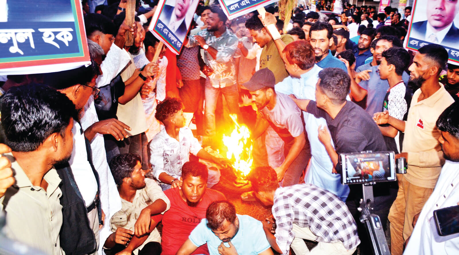 প্রত্যক্ষদর্শীরা জানিয়েছেন, বিক্ষোভকারীরা সড়কে টায়ার জ্বালিয়ে আগুন দেয়। সড়ক অবরোধ করে রাখায় ভোগান্তি হয়েছে সাধারণ মানুষের।