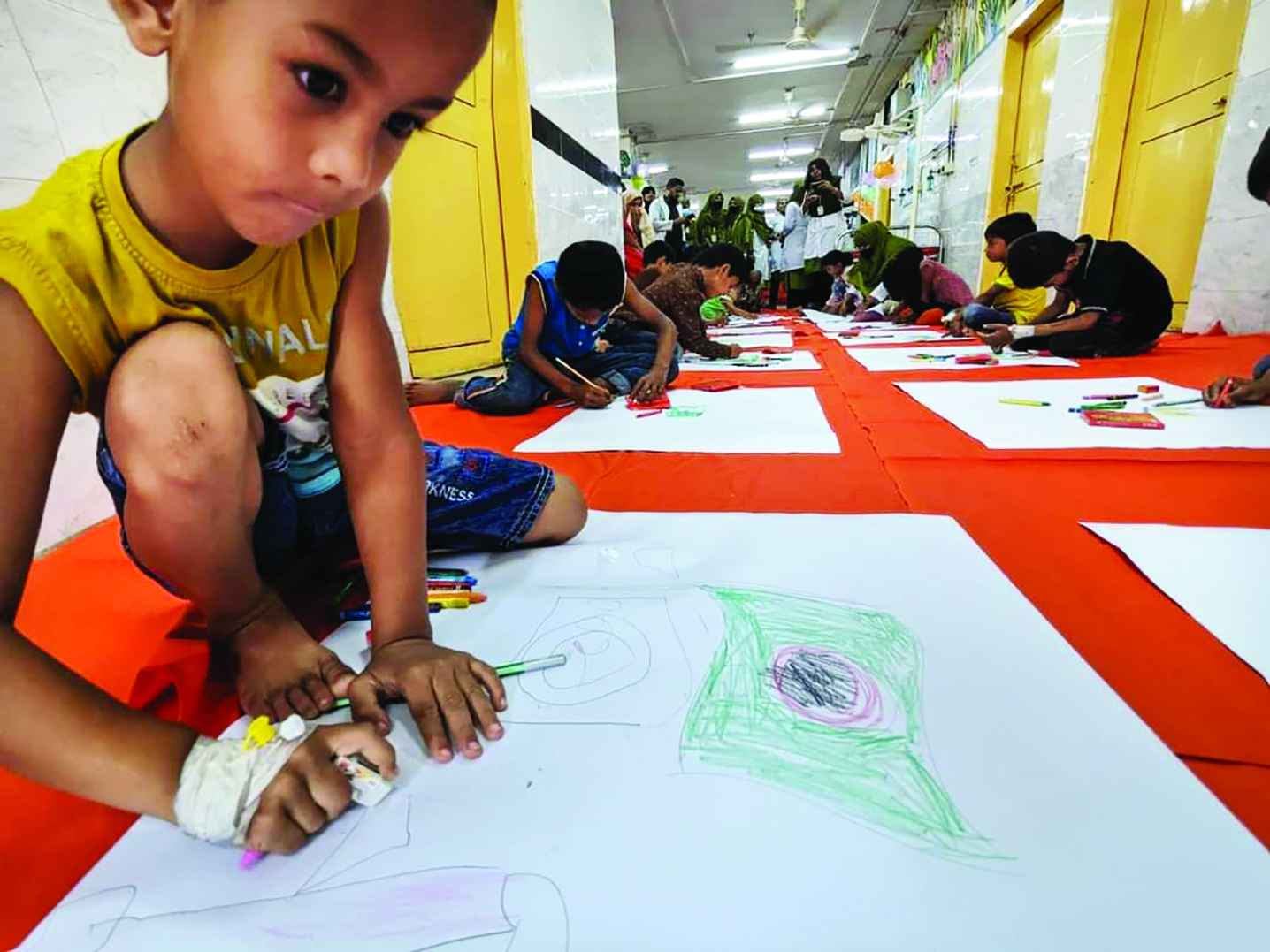 যে হাতে ক্যানোলা সেই হাতেই রং পেন্সিল। ফ্লোরে বসে মনের আনন্দে আঁকছে বঙ্গবন্ধু ও বাংলাদেশের প্রতিচ্ছবি। গতকাল রোববার বঙ্গবন্ধু শেখ মুজিবুর রহমানের ১০৪তম জন্মদিন ও জাতীয় শিশু দিবস উপলক্ষে জটিল রোগে আক্রান্ত শিশুদের নিয়ে এই আয়োজন করে কক্সবাজার সদর হাসপাতাল কতৃর্পক্ষ। এমন দৃশ্য দেখে আপ্লুত হন হাসপাতালে সেবা নিতে আসা রোগী ও স্বজনেরা। যা জনমনে সাড়া ফেলেছে।