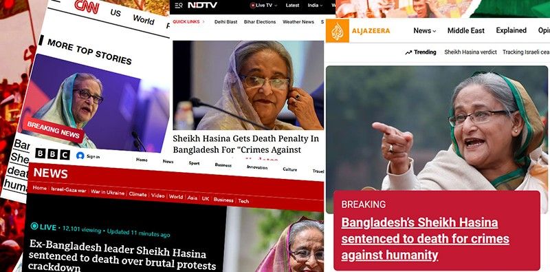 আন্তর্জাতিক সংবাদমাধ্যম রয়টার্স ‘ক্ষমতাচ্যুত প্রধানমন্ত্রী হাসিনার রায়’ নিয়ে গুরুত্ব সহকারে সংবাদ প্রচার করছে। এছাড়াও আন্তর্জাতিক অন্যান্য গণমাধ্যমে হাসিনার রায়কে ঘিরে প্রতিবেদন গুরুত্ব সহকারে প্রচার হয়েছে। ট্রাইব্যুনালে বিভিন্ন আন্তর্জাতিক গণমাধ্যম সরেজমিনে এ মামলার রায় কাভার করেছে।