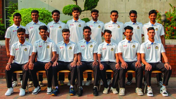 যুব এশিয়া কাপ খেলতে আজ দেশ ছাড়বে বাংলাদেশ অনূর্ধ্ব–১৯ দল। তার আগে গতকাল মঙ্গলবার আনুষ্ঠানিক ফটোসেশন করেছে টাইগার যুবারা। পরে বাংলাদেশ অনূর্ধ্ব–১৯ দলের অধিনায়ক আজিজুল হাকিম তামিম গণমাধ্যমের মুখোমুখি হন। গত দুই আসরের চ্যাম্পিয়ন হওয়ায় এবার হ্যাটট্রিক চ্যাম্পিয়ন হওয়ার সম্ভাবনা বাংলাদেশের। সেই আশা নিয়েই দুবাই যাবে আজিজুল হাকিম তামিমের দল। বাংলাদেশ অনূর্ধ্ব ১৯ দল দারুণ ফর্মে আছে। গত কয়েক মাসে তারা কোনো সিরিজ হারেনি। অধিনায়ক তামিম দলের ধারাবাহিক জয়ের উপর ভরসা রাখছেন এবং দলকে ইতিবাচক মনোবল দিয়ে এগিয়ে নিতে চান। তামিম বলেন, ‘আমরা প্রায় সবগুলো সিরিজেই জিতেছি এবং শেষ কয়েকটা সিরিজ ড্র হয়েছে। আমরা এখন একটা সিরিজও হারিনি। তো আমাদের বিশ্বাস আছে যে আমরা ভালো কিছু করব, ইনশাআল্লাহ।’ দলের অভিজ্ঞ খেলোয়াড়দের সংযোজন এবং কঠোর সিরিজের মাধ্যমে অর্জিত অভিজ্ঞতাকে দলের শক্তি হিসেবে দেখছেন তামিম, ‘পরিবর্তন শুধু আমি মনে করি অভিজ্ঞতা। আমরা যতগুলো ম্যাচ খেলছি সবমিলিয়ে বিশ্বে মনে হয় এত বেশি ম্যাচ কেউ খেলেনি। আর সবাই এখানে অভিজ্ঞ খেলোয়াড়। যেমন জীবনও এখন দলে যুক্ত হয়েছে। ওই হিসেবে, ইনশাআল্লাহ ভালো কিছু হবে।’এই বছরের খেলা ম্যাচের পরিমাণ ও অভিজ্ঞতা দলের জন্য ইতিবাচক প্রভাব ফেলছে, ‘হ্যাঁ, ইনশাআল্লাহ। দেখেন যে আশা করা যায় যে আমরা যেভাবে ম্যাচ আপনারা বললেন যে আমরা মনে হয় ৩০টিরও বেশি ম্যাচ খেলেছি। এই বছরটা অনেক সিরিজ হয়েছে। আমাদের খেলোয়াড়দের ভালো অভিজ্ঞতা হয়েছে। বিশ্বকাপ খেলা দুইজনও দলে আছে, ইমন আর জীবন। ইনশাআল্লাহ দেখা যাক আল্লাহ ভরসা।’ দলের লক্ষ্য ও চ্যাম্পিয়নশিপের মনোভাব নিয়ে তামিম বলেছেন, ‘আমরা সবসময় ভিতর থেকে থাকে যে আমরা একটা ভালো কিছুর চ্যাম্পিয়নের জন্য। কিন্তু আমরা প্রসেসে বিশ্বাসী। ভিতর থেকে তো আশা থাকবে ইনশাআল্লাহ হ্যাটট্রিকের (চ্যাম্পিয়নশিপের) কিন্তু আমরা প্রসেসে বিশ্বাসী, দেখা যাক আল্লাহ ভরসা।’