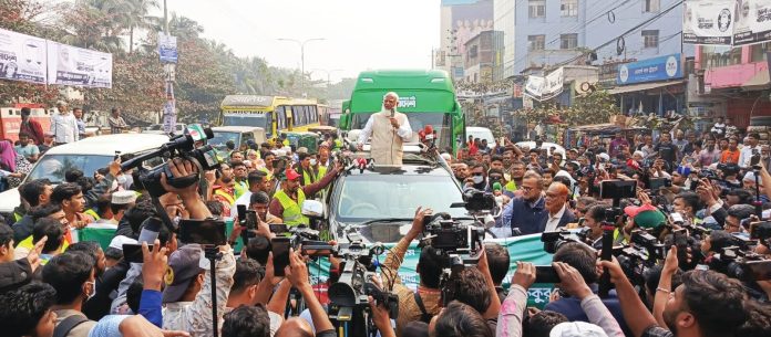 নির্বাচনে জামায়াত বিজয়ী হলে চাঁদাবাজদের বিরুদ্ধে প্রতিরোধ গড়ে তোলার প্রতিশ্রুতি দেন তিনি। বলেন, ‘১৩ তারিখ থেকে পাল্টে যাবে বাংলাদেশের চিত্র। যেখানে হাত অবশ হয়ে যাবে ৯০ ভাগ চাঁদাবাজের।’ চাঁদাবাজি বন্ধ করতে আইনশৃঙ্খলা বাহিনীর পাশাপাশি জামায়াত নেতাকর্মীরাও মাঠে থাকবে বলে জানান তিনি।