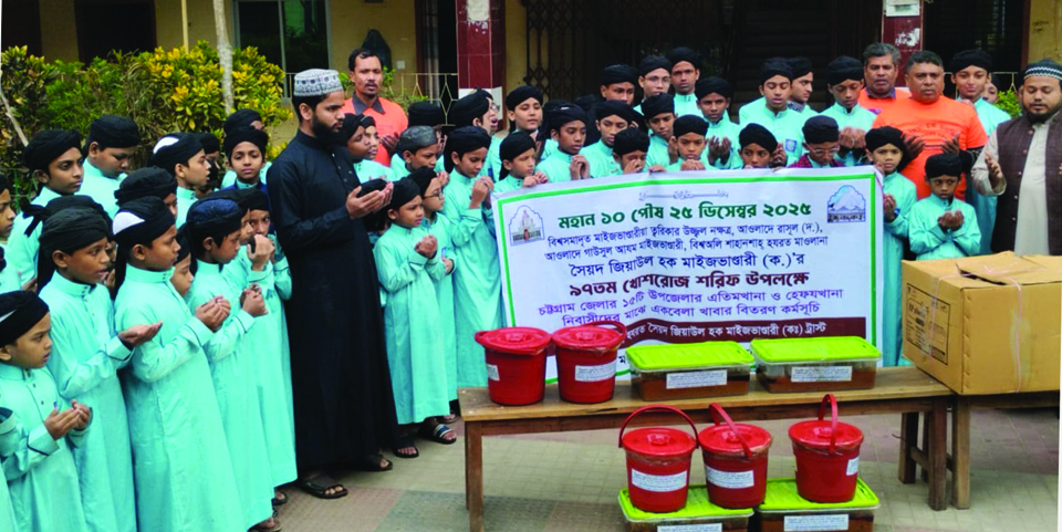 গত বছরও বিশ্বঅলি শাহানশাহ্ হযরত মাওলানা শাহ্ সুফি সৈয়দ জিয়াউল হক মাইজভাণ্ডারী (ক.)-এর ৯৬তম খোশরোজ শরিফ উপলক্ষে চট্টগ্রাম জেলার ১৪টি উপজেলার প্রায় ৯৮৭টি এতিমখানা ও হেফযখানা এবং আশ্রমের ৫৭ হাজার নিবাসীদের মাঝে একবেলা খাবার পরিবেশন করা হয়। প্রেস বিজ্ঞপ্তি।